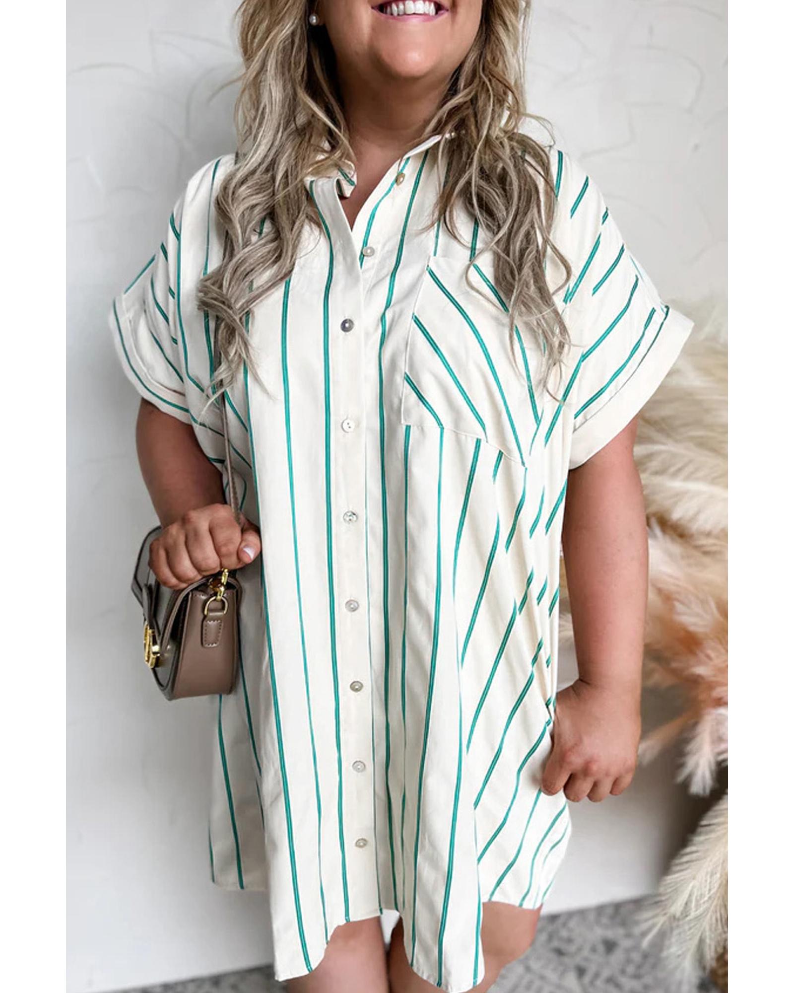- Green Stripe Plus Size St Patricks Day Short Sleeve Buttoned Shirt Dress