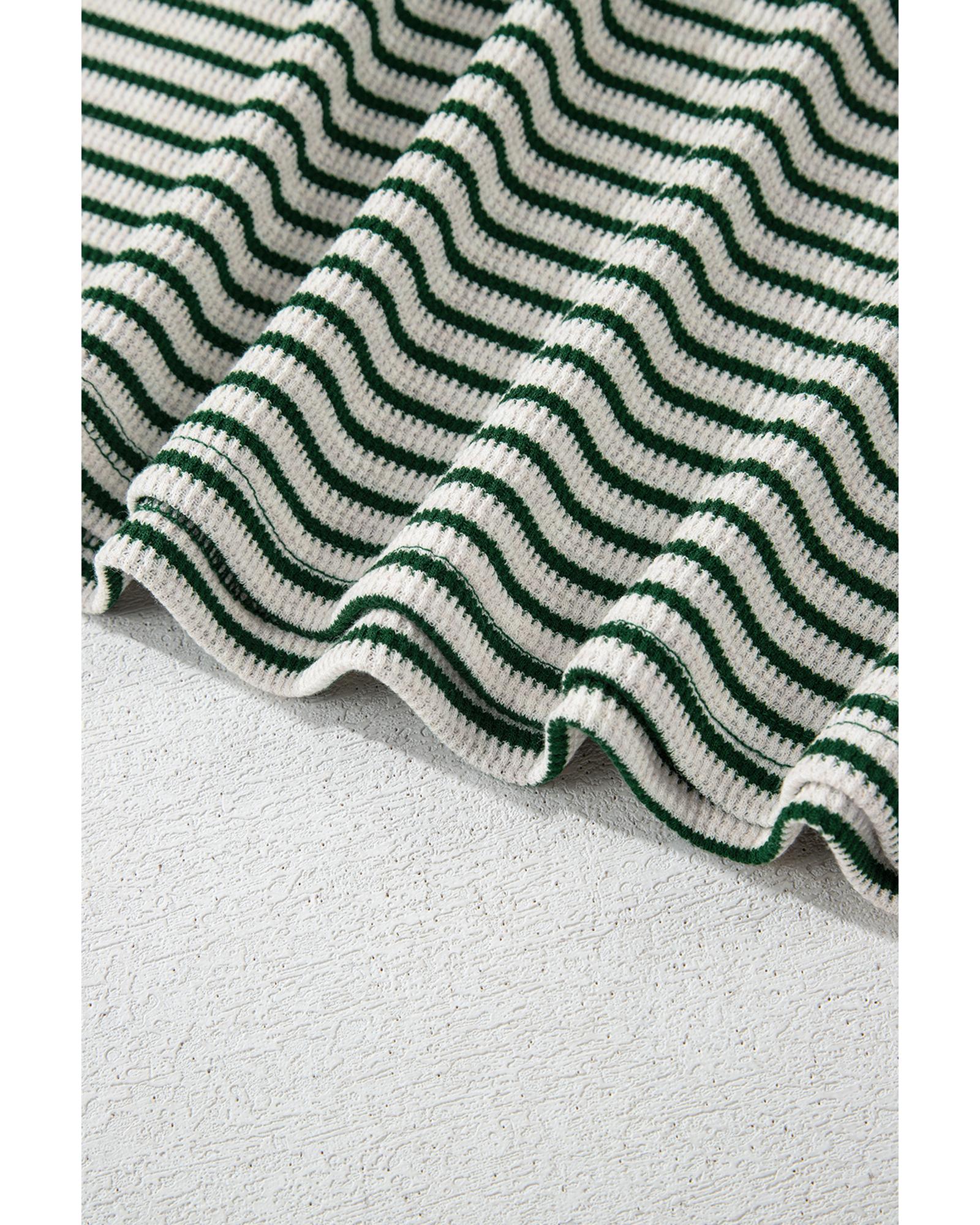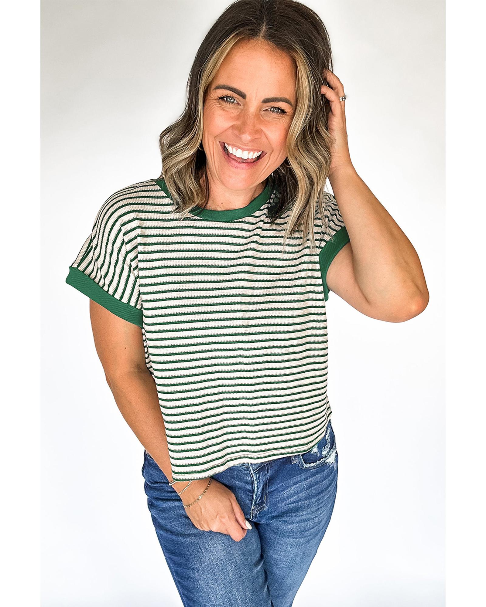 - Green Stripe Trimmed Round Neck Plus Size Boxy Fit T