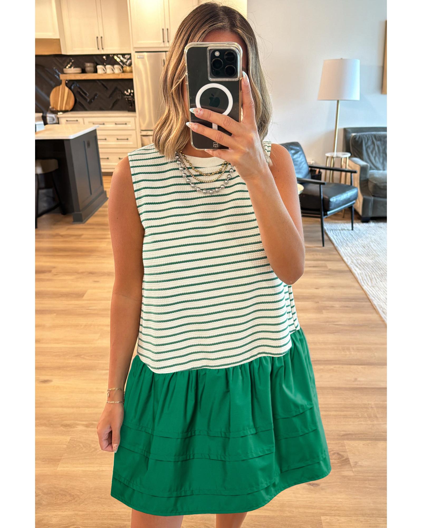 Green Stripe Woven Ruffled Sleeveless Mini Dress – XL