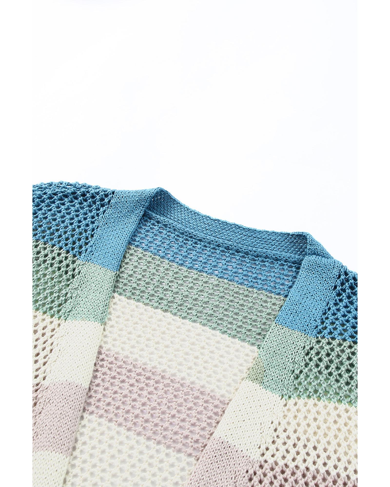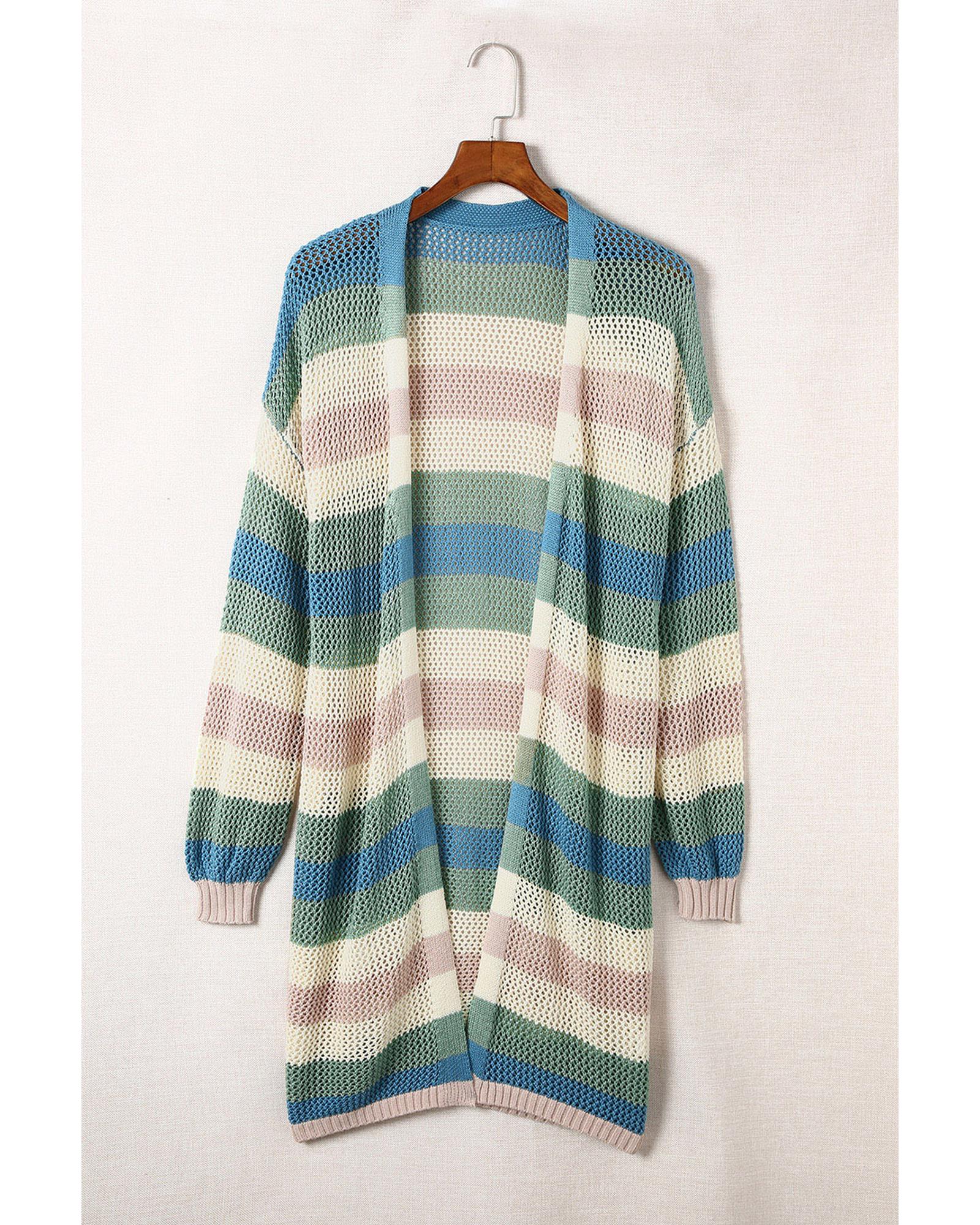 Green Striped Color Block Hollowed Knit Cardigan – M