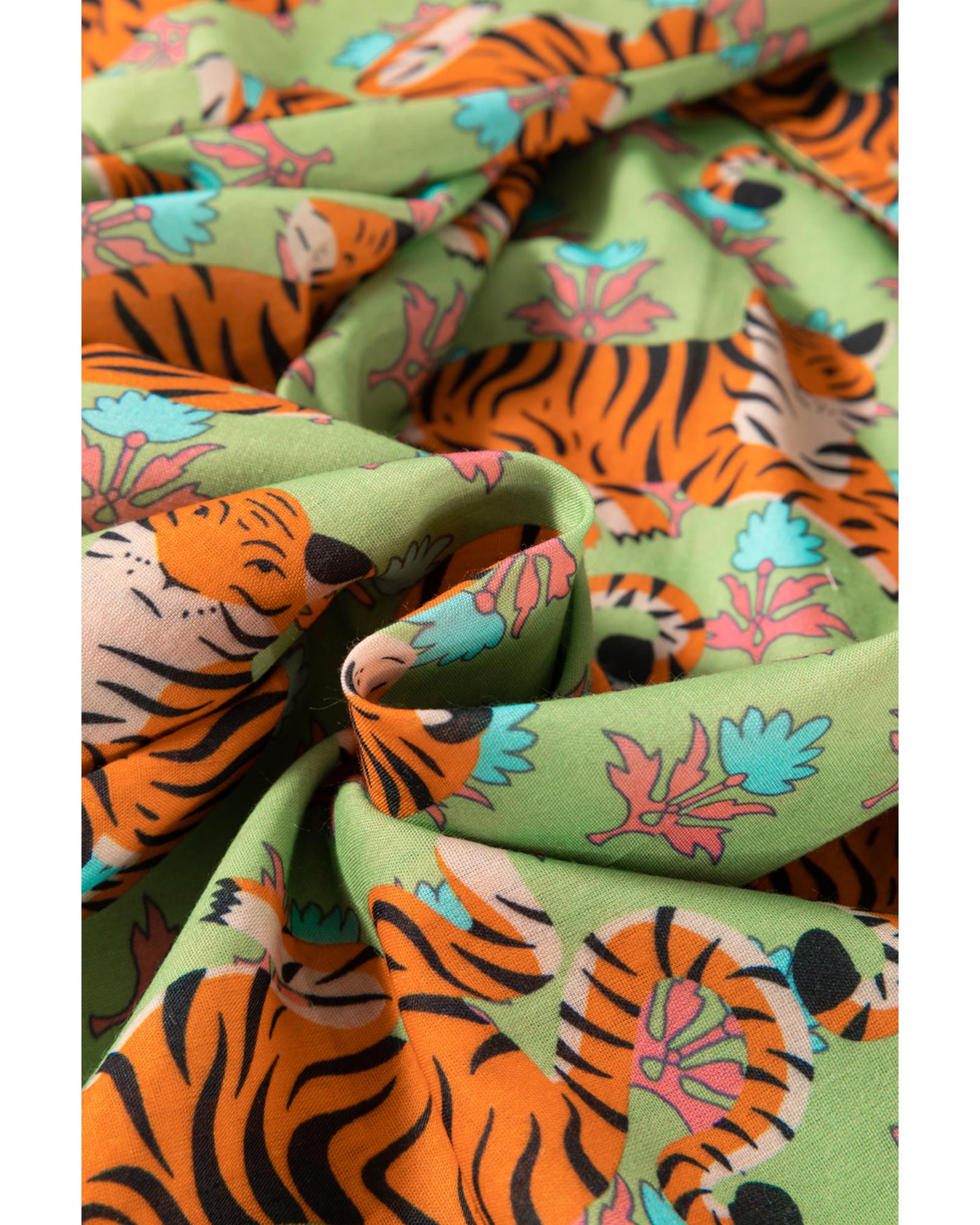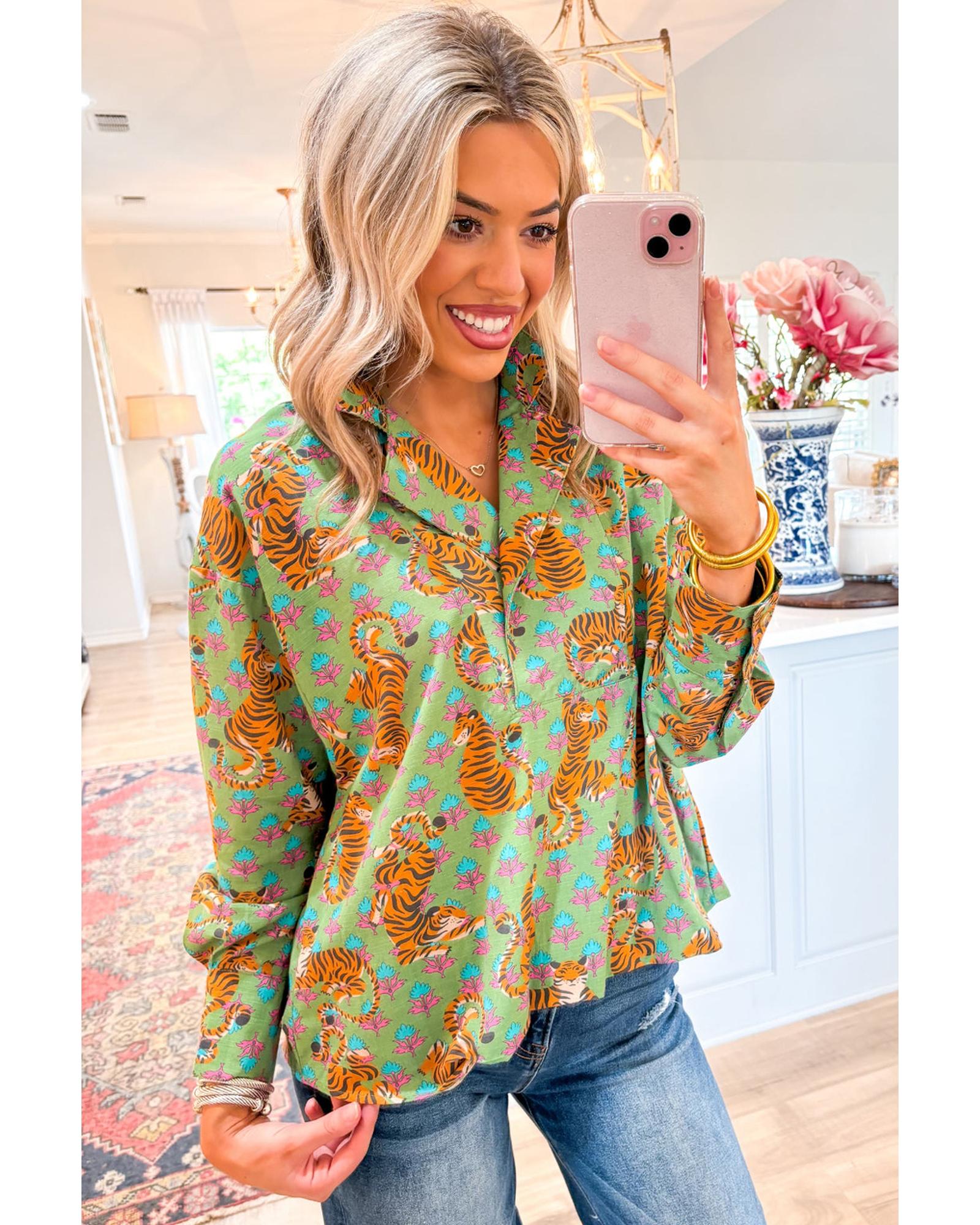 Green Tiger Floral Printed Collared V Neck Casual Shirt – XL