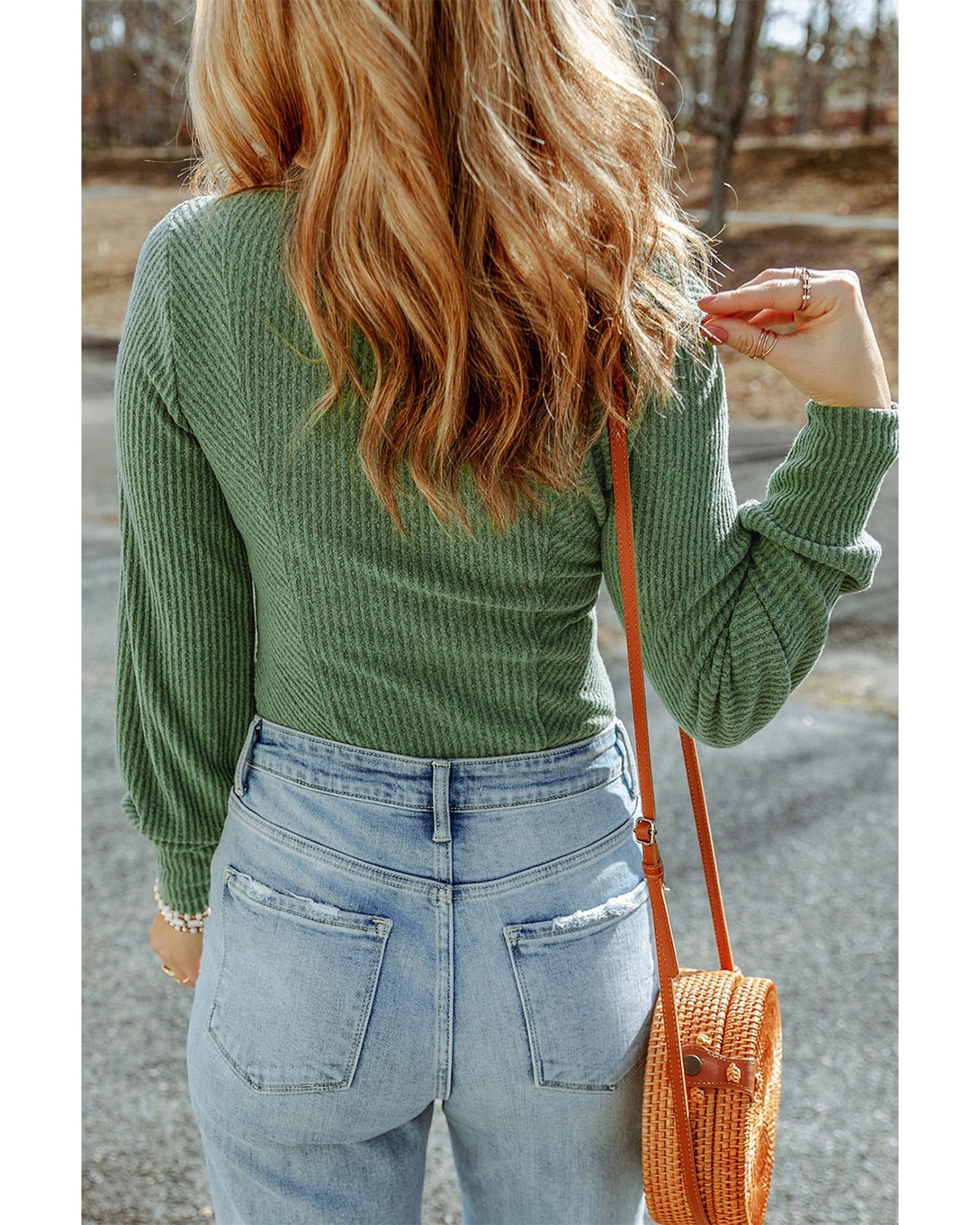 Green U Neck Textured Long Sleeve Top – XL
