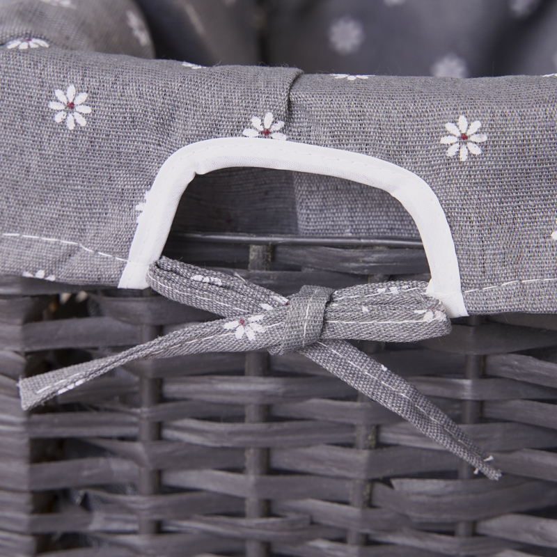 Grey Bedside Table with Wicker Basket