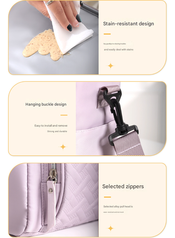 • Convenient Storage Pockets: Includes a stylish quilted zippered front pocket, perfect for storing utensils, napkins, or small personal items like your phone. Also features two side slip pockets for additional storage like water bottles or small accessories.