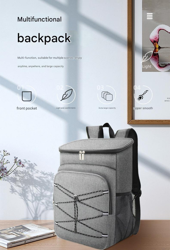 Grey Large Insulated Cooler Backpack – Leakproof, Lightweight for Picnic, Beach, Camping