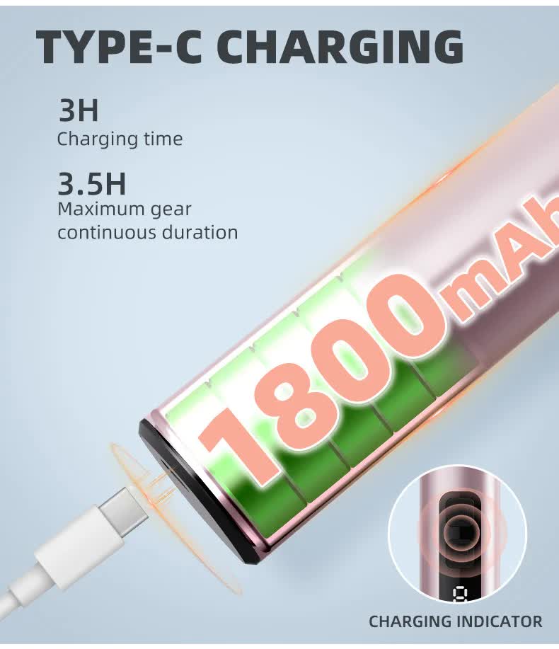 • Rechargeable with Type-C Charging: Equipped with a Type-C cable, the device charges in 2.5 hours for up to 50 minutes of use. Charging indicator lights flash white during charging and remain steady when fully charged.