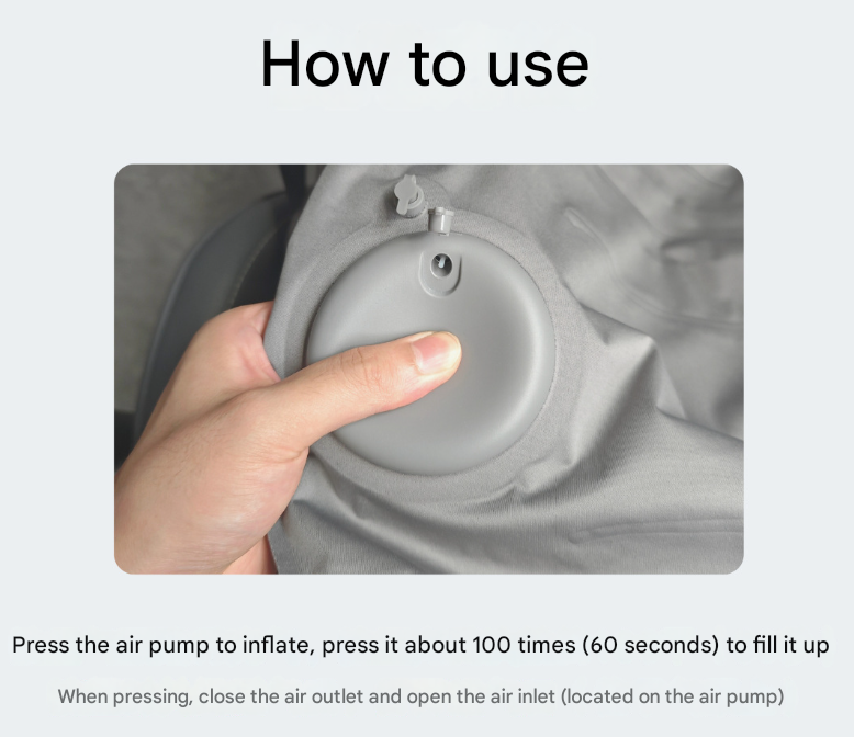 - Adjustable Firmness: Easily control the level of support by adjusting the amount of air. Inflate fully for firm support or slightly less for a softer cushion.