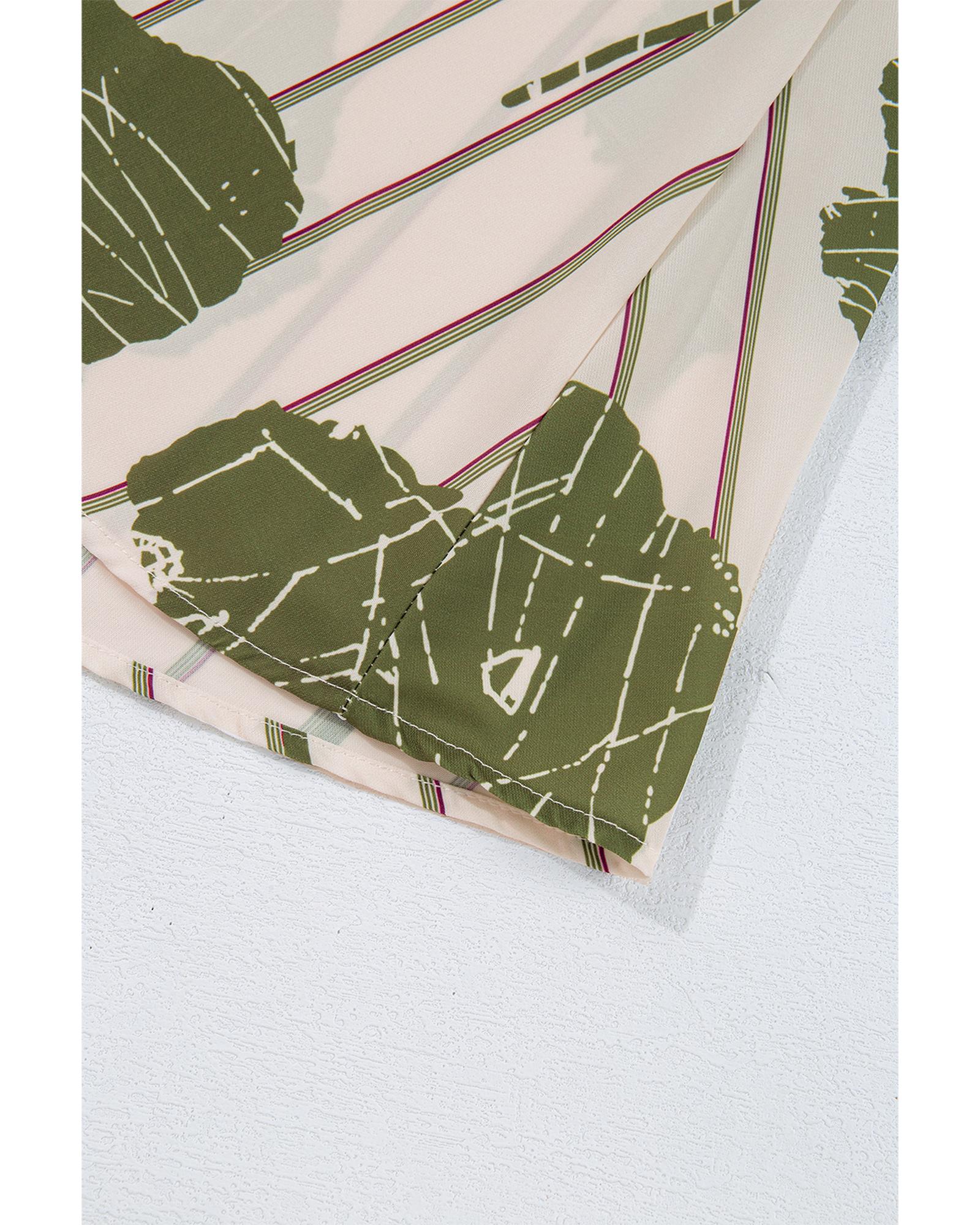 - Vibrant green floral print with striped background