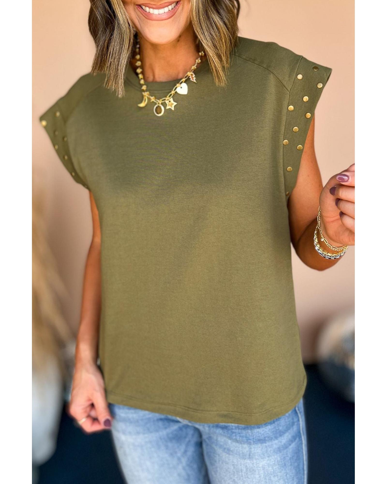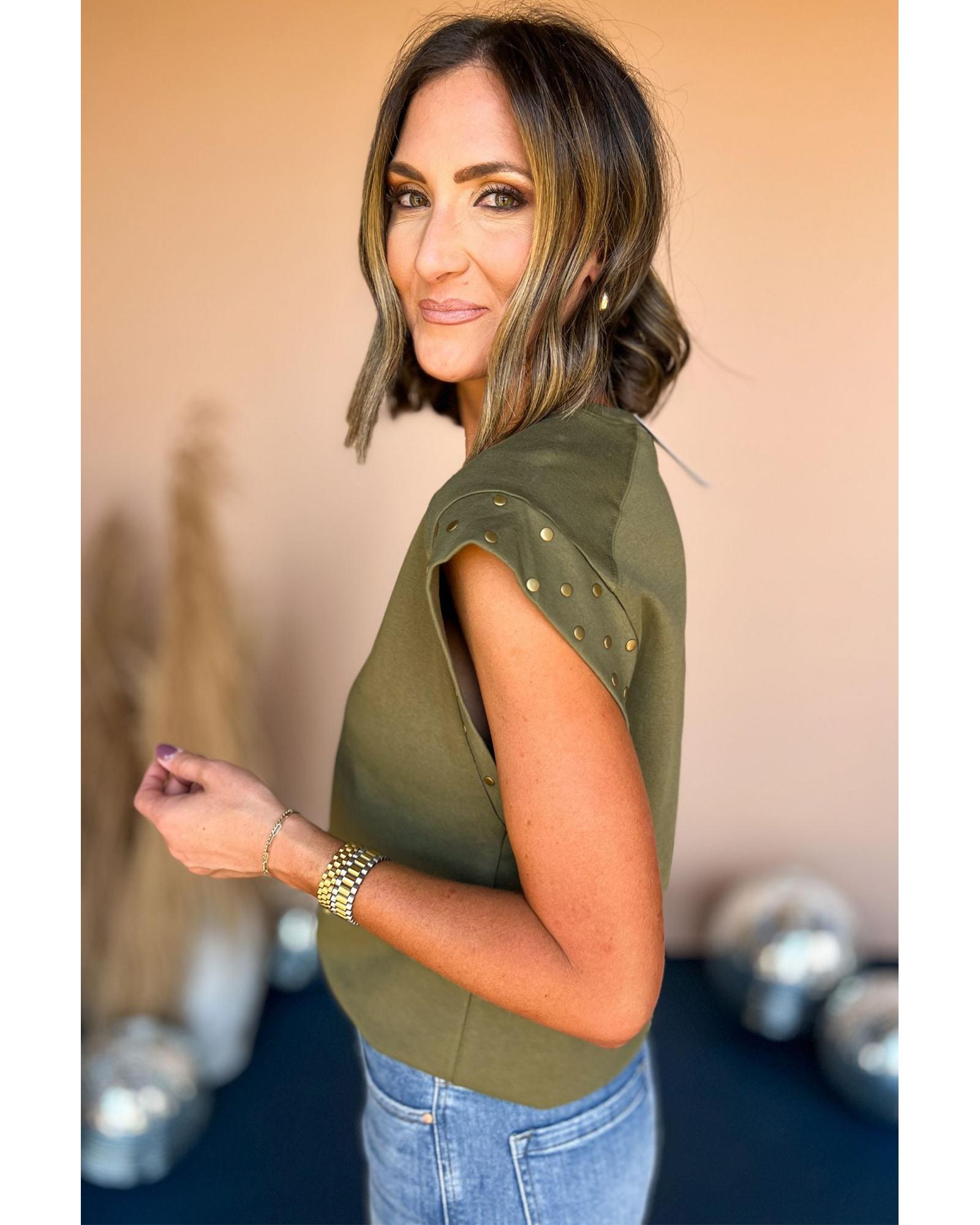 • Guacamole Green Studded Short Sleeve Top