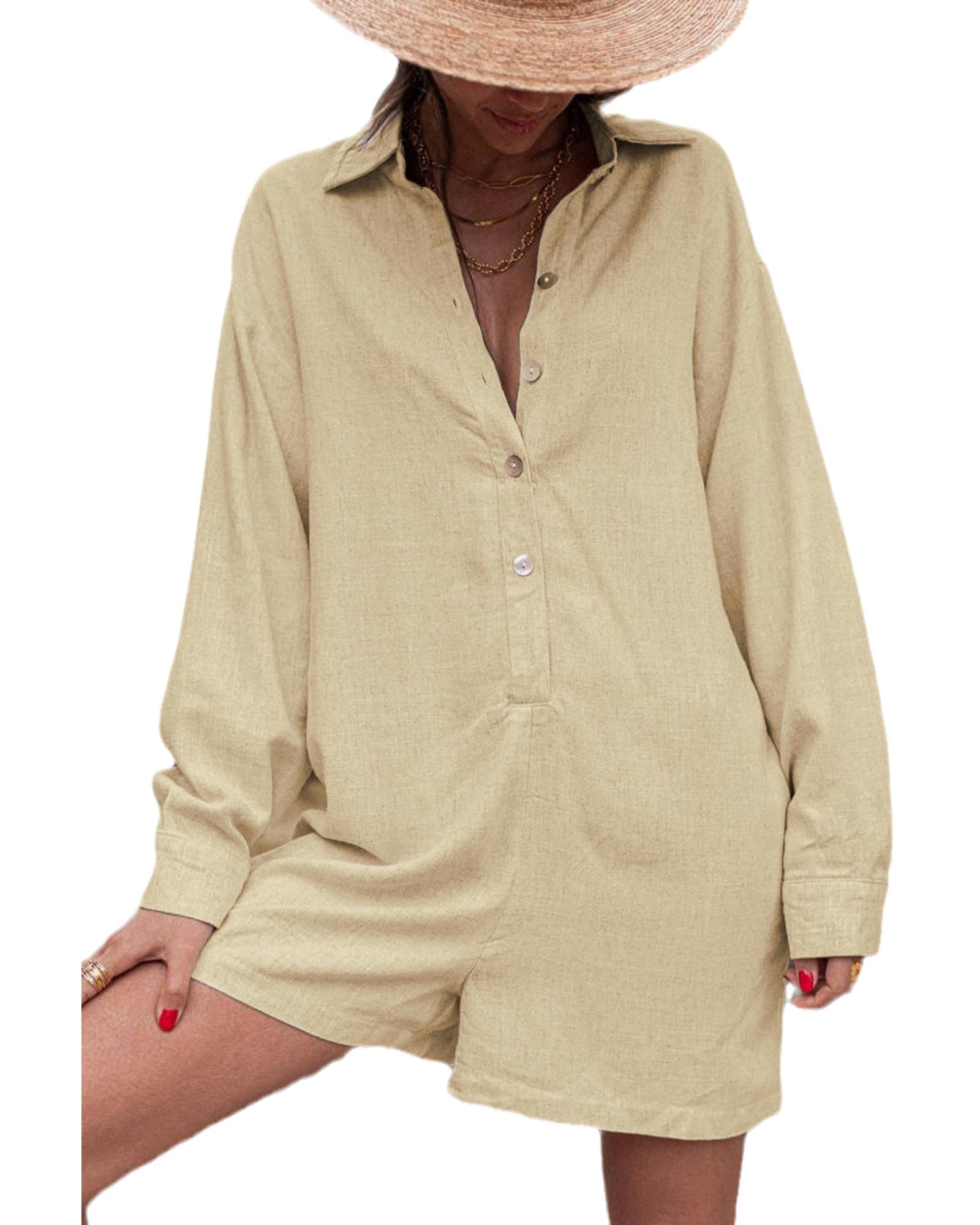 Half Button Shirt Collar Long Sleeve Loose Romper – L