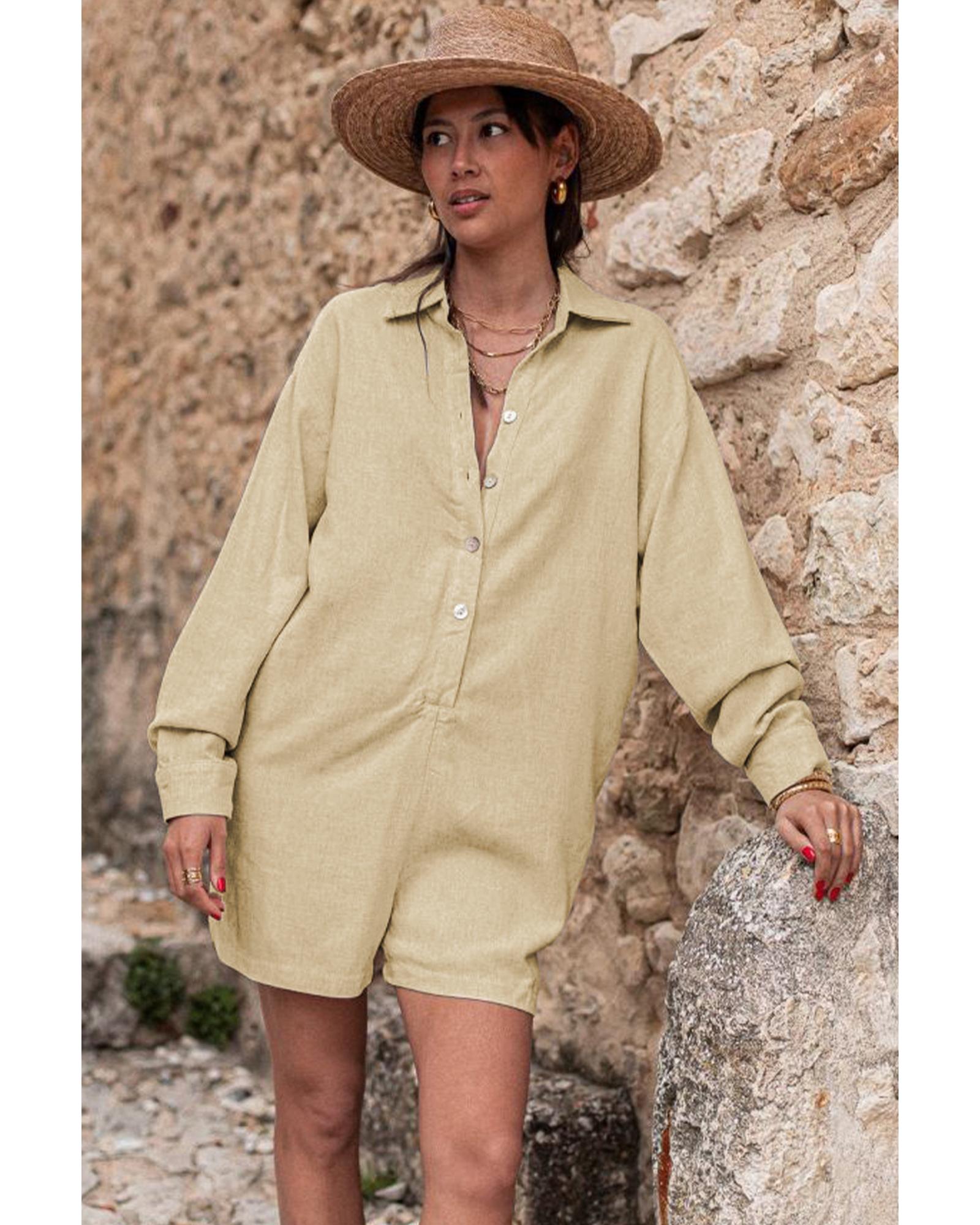 Half Button Shirt Collar Long Sleeve Loose Romper – XL