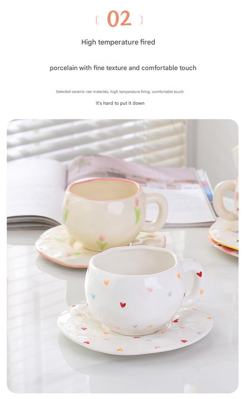 Designed for both style and practicality, this set is ideal for afternoon tea, casual gatherings, or daily use. The cup’s ergonomic handle ensures a comfortable grip, and the set is safe for use in the microwave, dishwasher, and sterilizer, making it easy to clean and maintain. This elegant set is a thoughtful addition to any kitchen or a perfect gift for tea and coffee lovers.