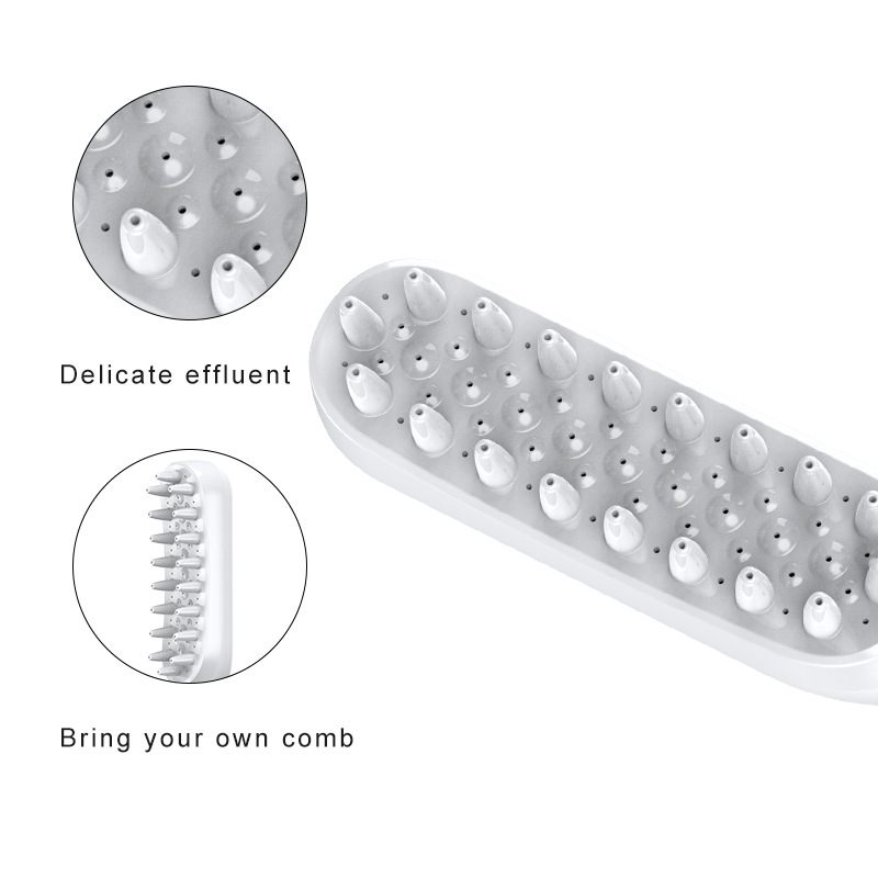 - Innovative Sprayer & Comb Design: Water outlets are strategically placed at the tips of the comb teeth, delivering water directly into your pet’s coat for deep cleaning and efficient rinsing. The comb helps to detangle and remove loose fur while washing.