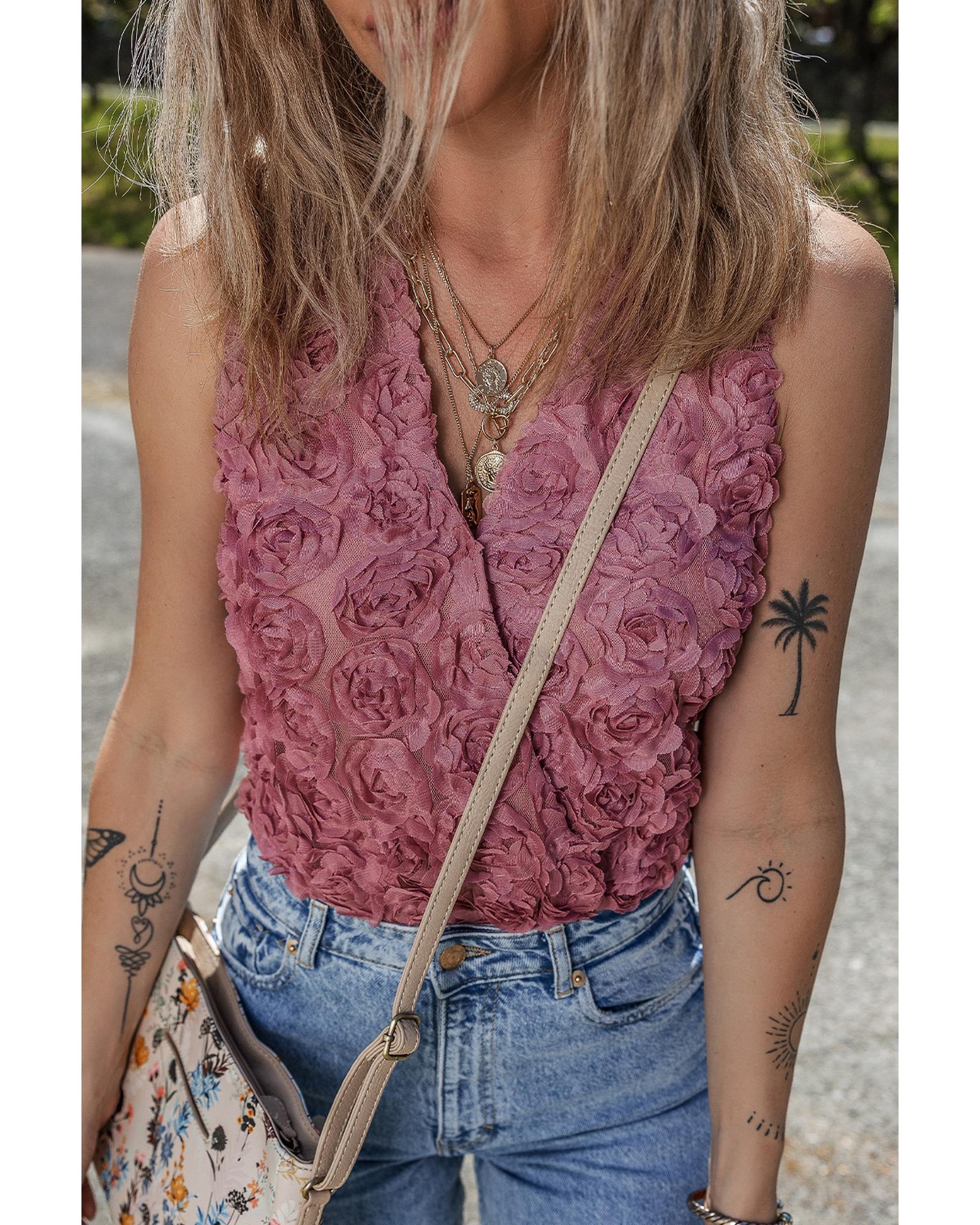 Heather Floral Textured V Neck Wrapped Sleeveless Bodysuit – L