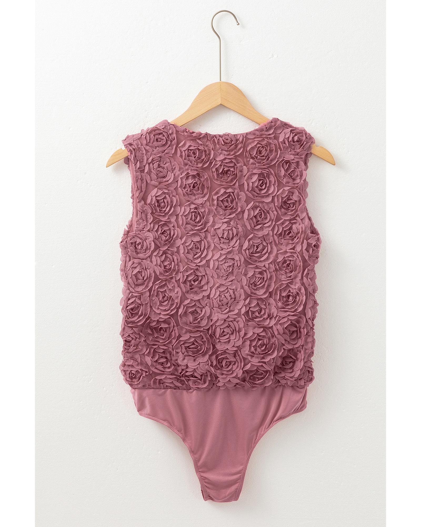 Heather Floral Textured V Neck Wrapped Sleeveless Bodysuit – M