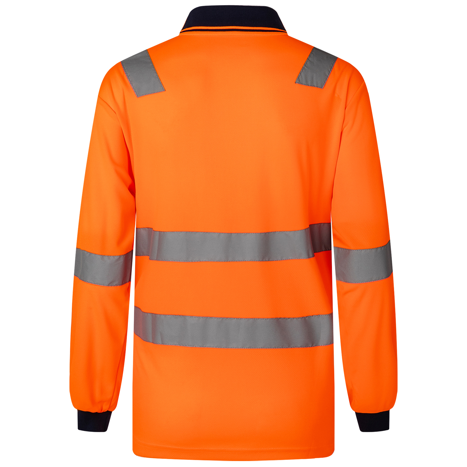 HI VIS Long Sleeve Workwear Shirt w Reflective Tape Cool Dry Safety Polo 2 Tone, Fluoro Orange / Navy, S