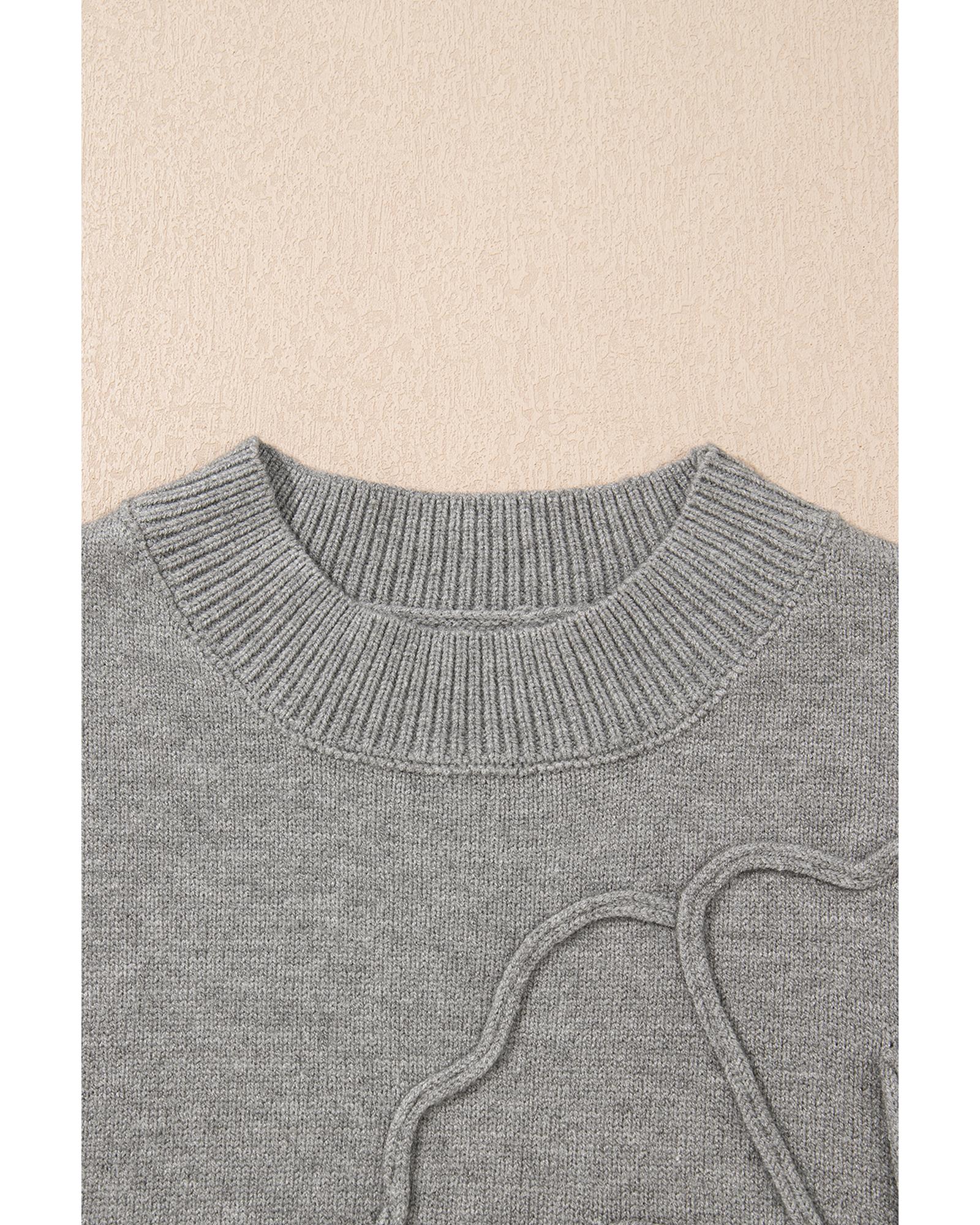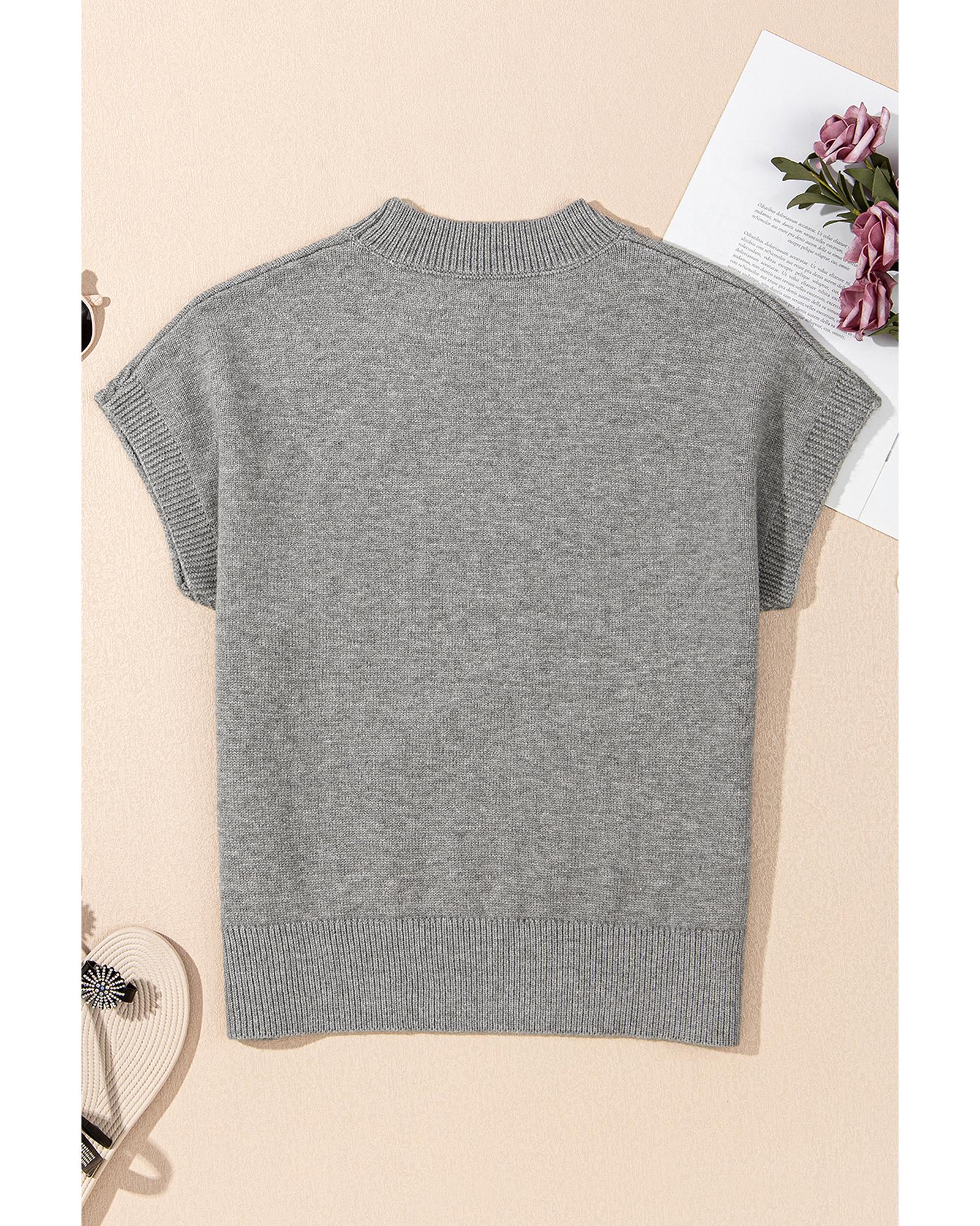 • High Flower Pattern Ribbed Trim Short Sleeve Boxy Sweater