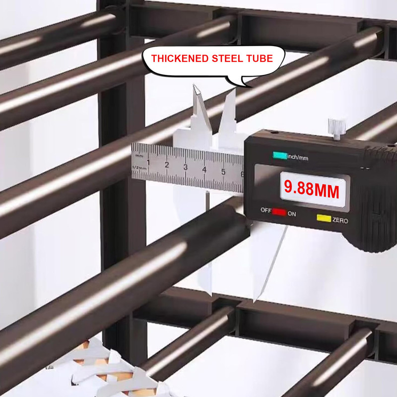 - Built with strong 9.88mm steel pipes and durable PP connectors, each shelf offers solid stability and holds a variety of shoes—from casual sneakers to boots and sandals. The widened shelf depth and 16.5 cm spacing between layers offer ample room for different shoe styles, while the raised base design keeps shoes off the floor, helping to protect against dust and moisture.