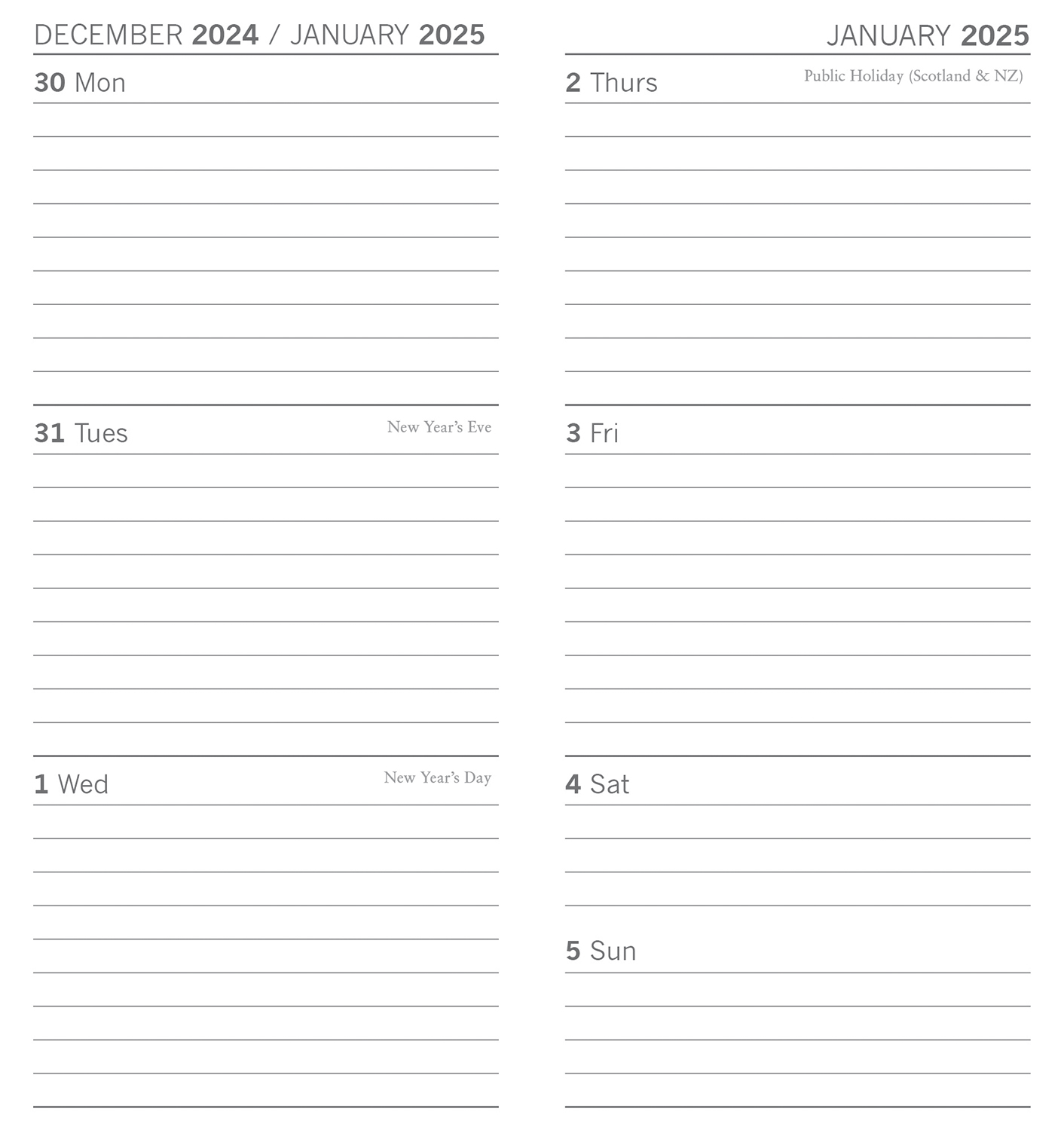- Format: Week To View (from Monday through to Sunday in two pages)