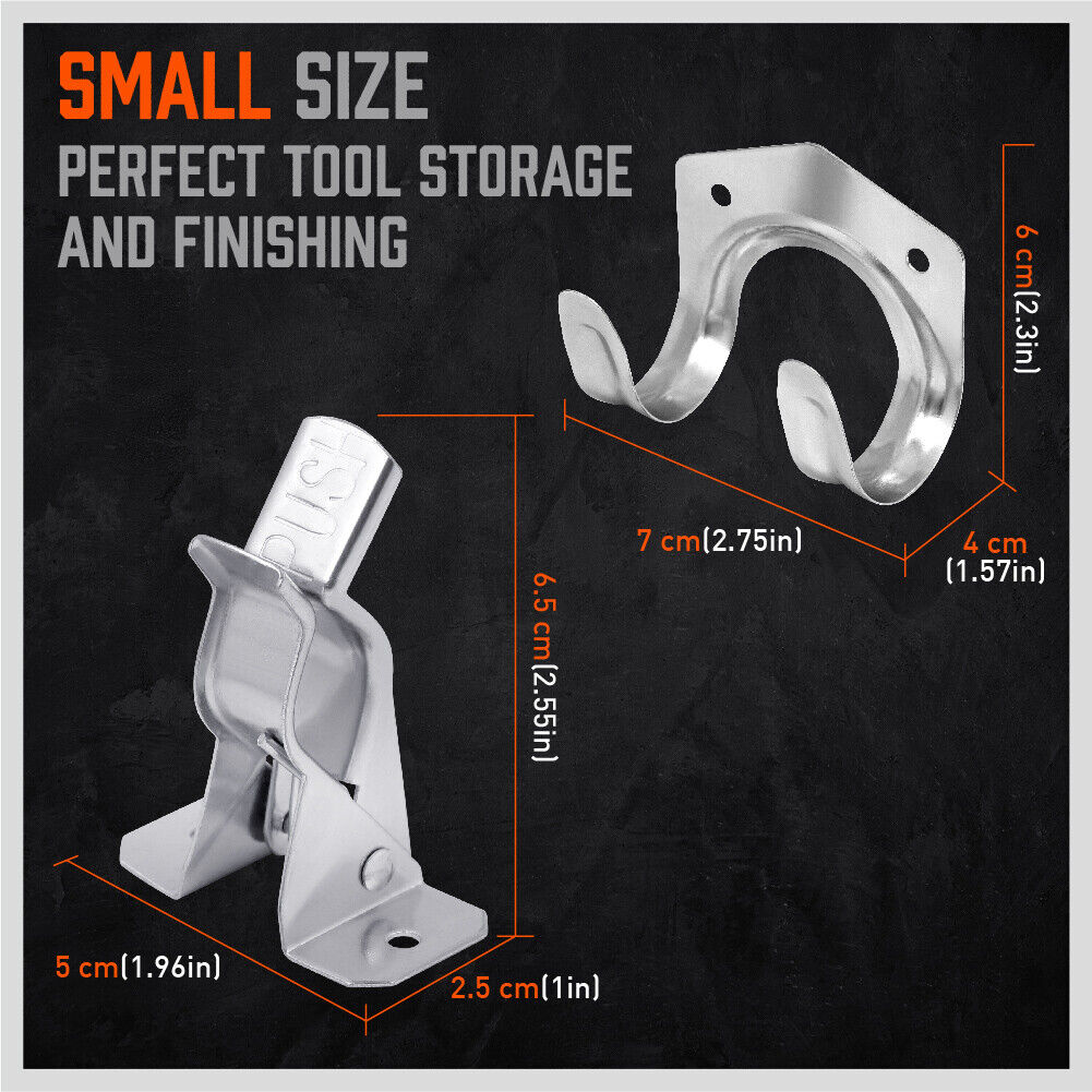 DURABLE STABLE –Strong spring loading can withstand a weight of up to 10 pounds, hanging storage system is designed to firmly grip and support large household tools. Strong grip will tighten the shovel, axe, broom, scorpion, mop, and brush without slipping.