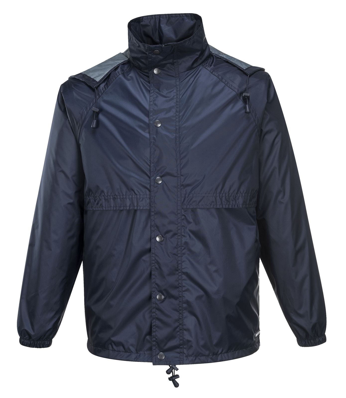 HUSKI STRATUS RAIN JACKET Waterproof Workwear Concealed Hood Windproof Packable - Navy Blue - S