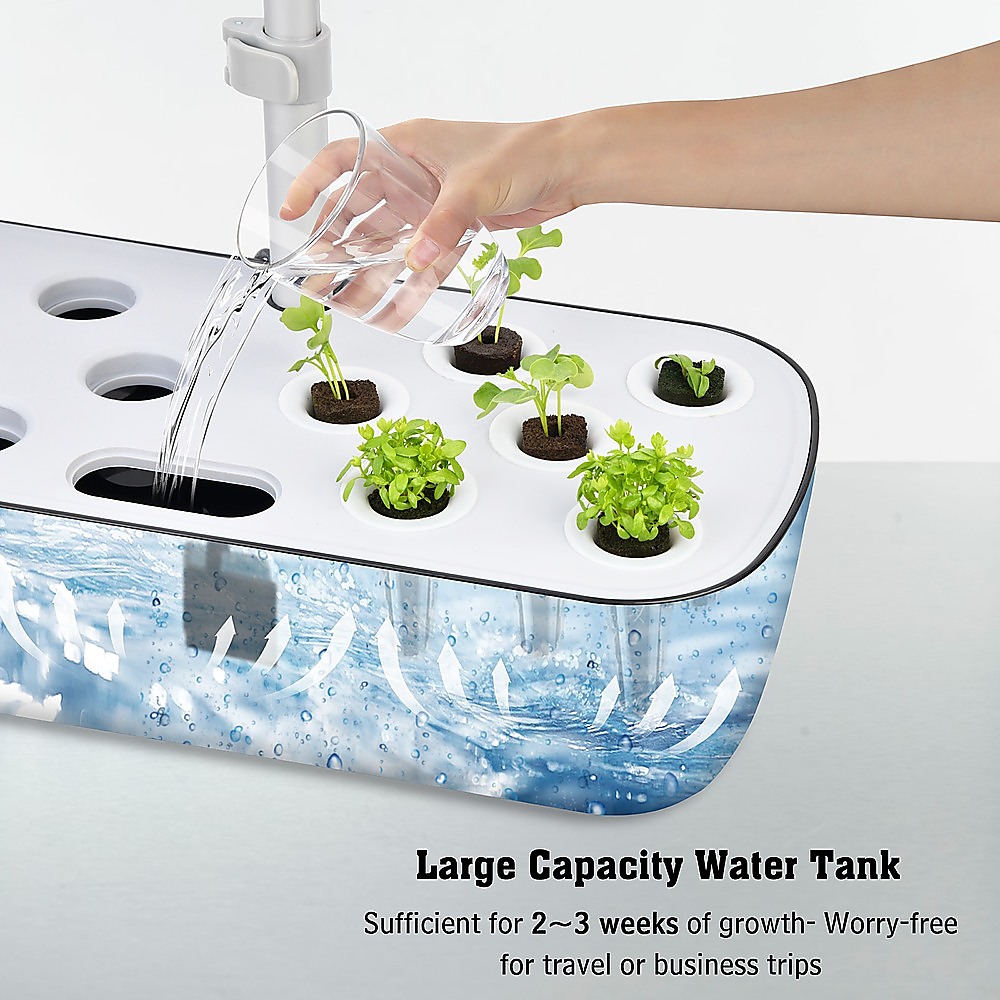 3. Large Capacity Water Tank: The ample water tank capacity ensures worry-free growth for 2-3 weeks, making it ideal for travel or business trips.