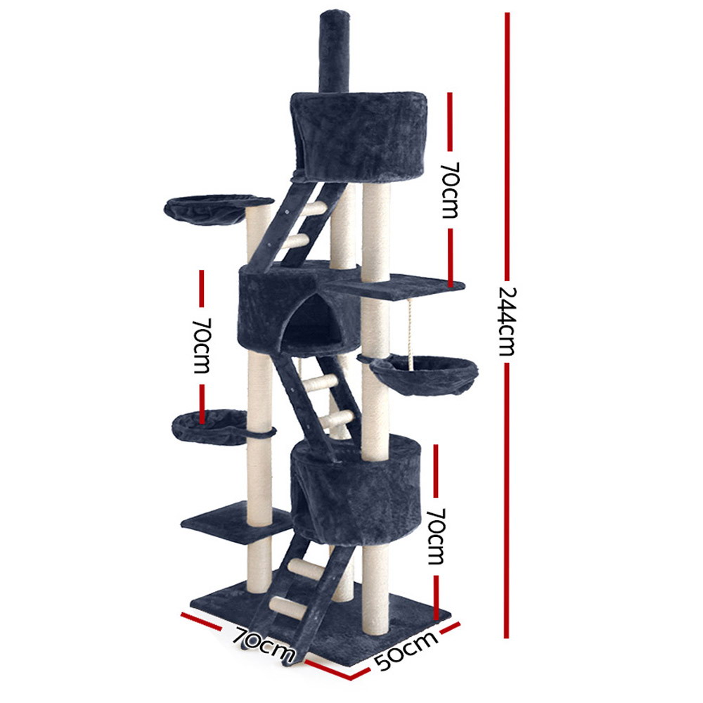 i.Pet Cat Tree 244cm Tower Scratching Post Scratcher Trees Condo House Grey