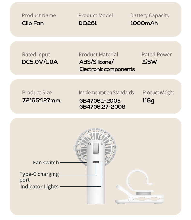 Portable Multifunctional Clip Fan DQ261 – Stay Cool Anywhere