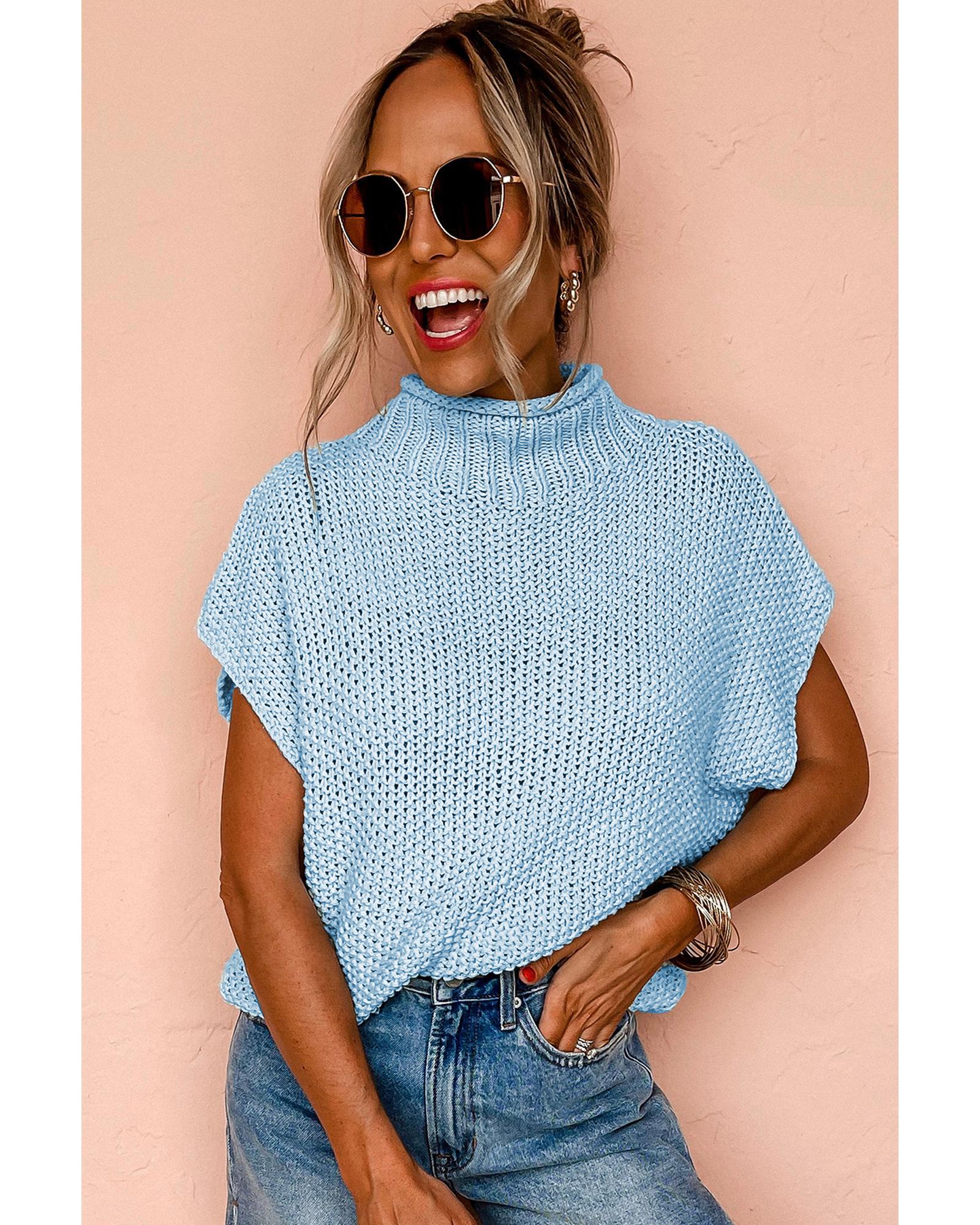 Iceland Blue High Neck Bat Short Sleeve Sweater - XL Original price was: $66.99.Current price is: $35.99.