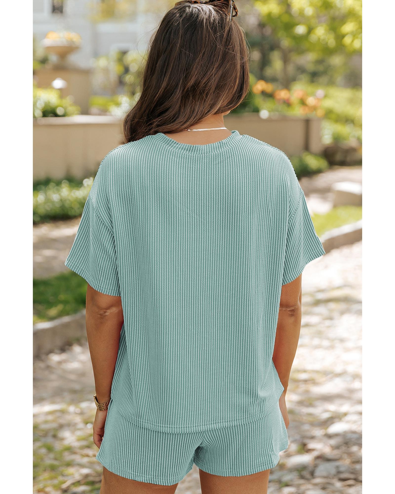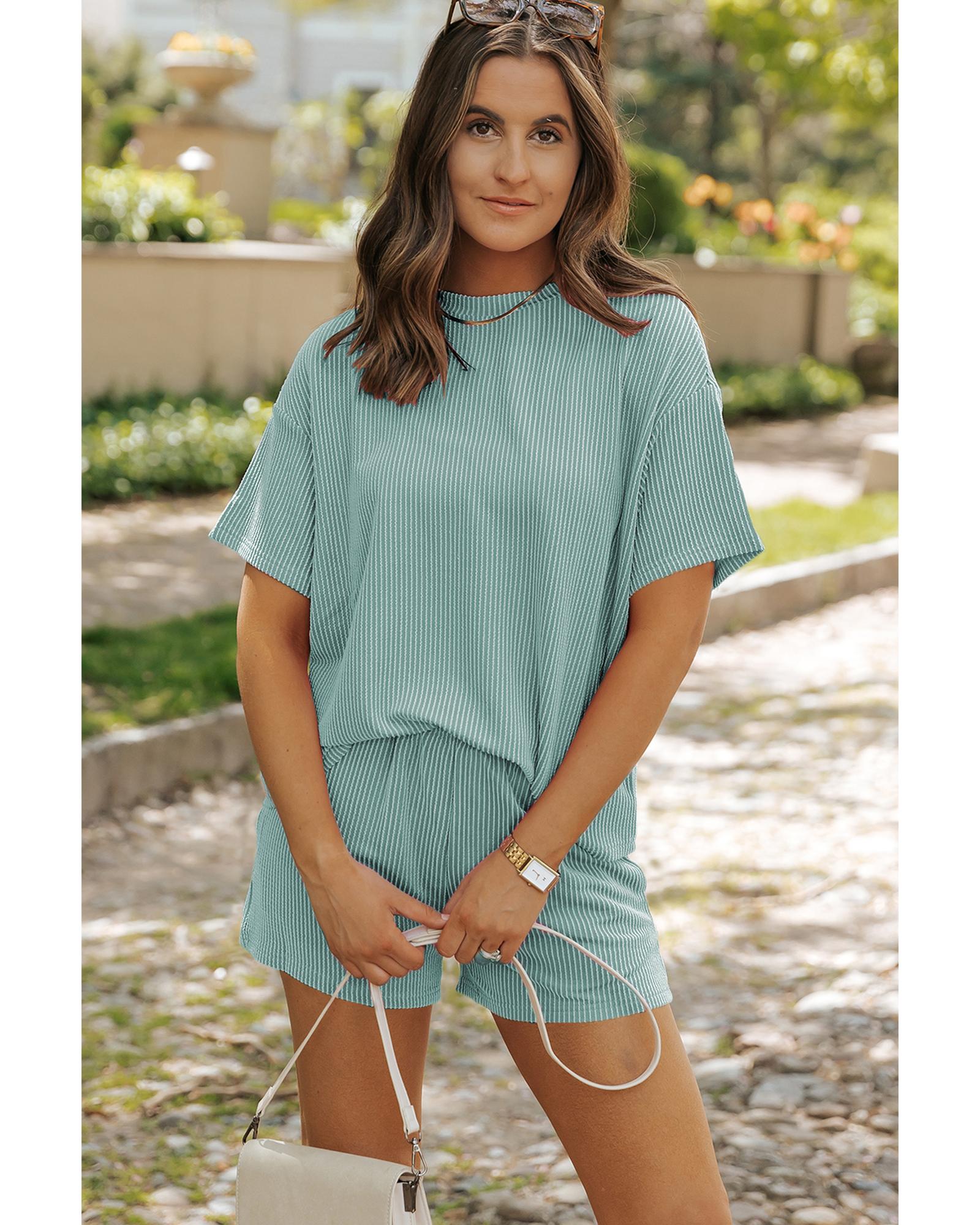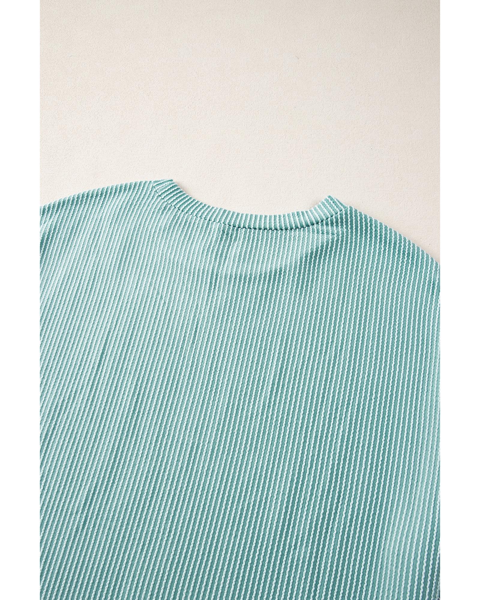 Iceland Blue Ribbed Textured Knit Loose Fit Tee and Shorts Set – S