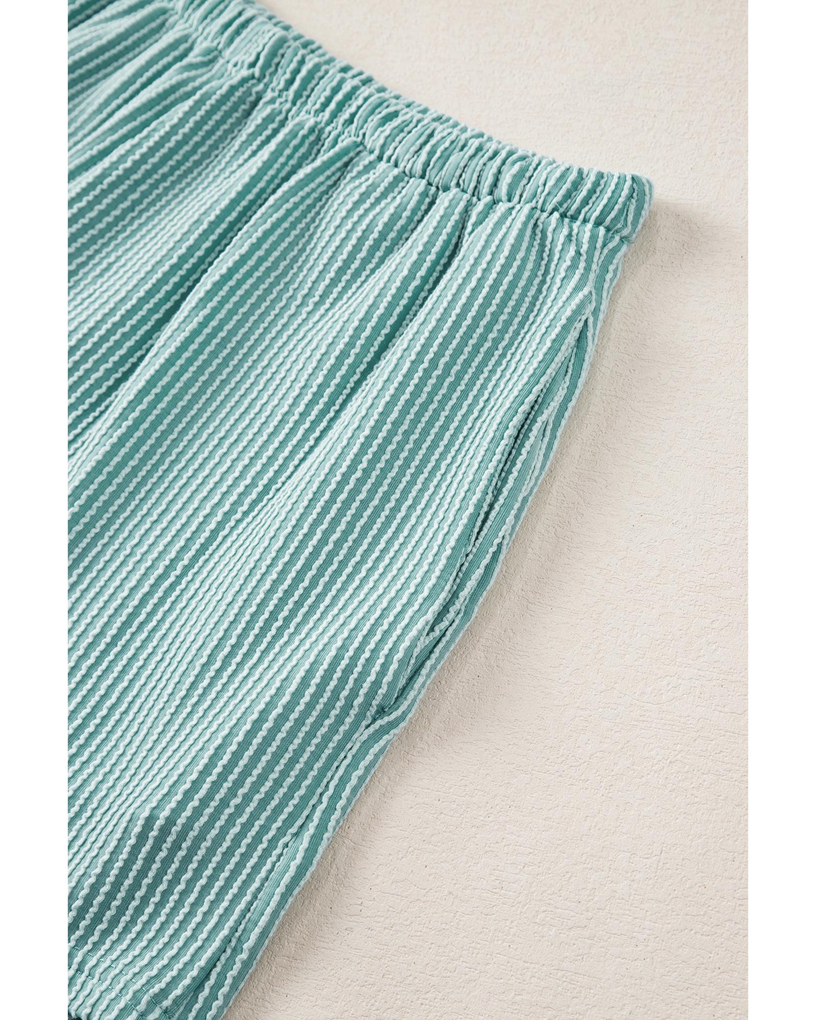 Iceland Blue Ribbed Textured Knit Loose Fit Tee and Shorts Set – XL