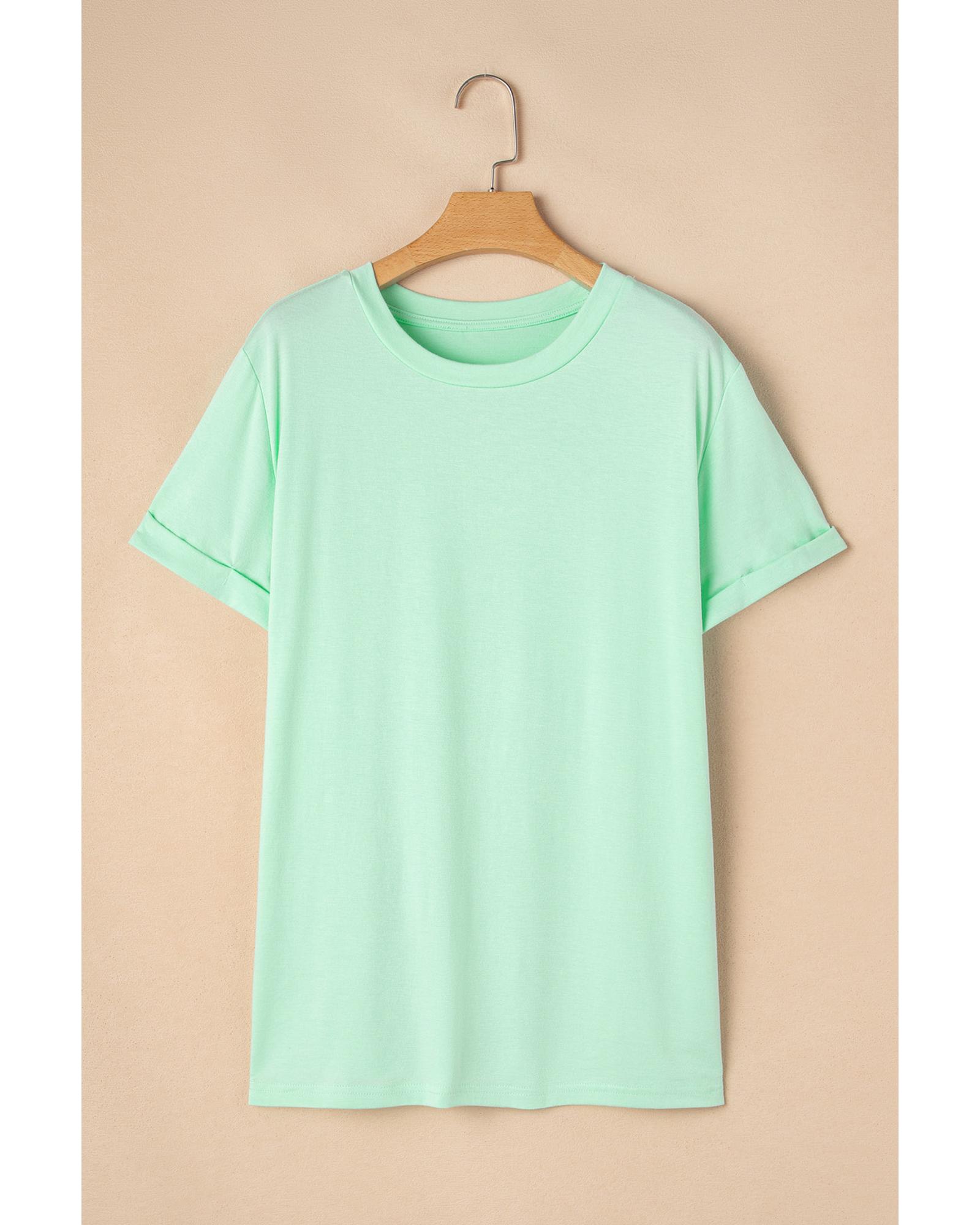 Iceland Blue Round Neck Rolled Sleeve Plus Size T-shirt – 4X