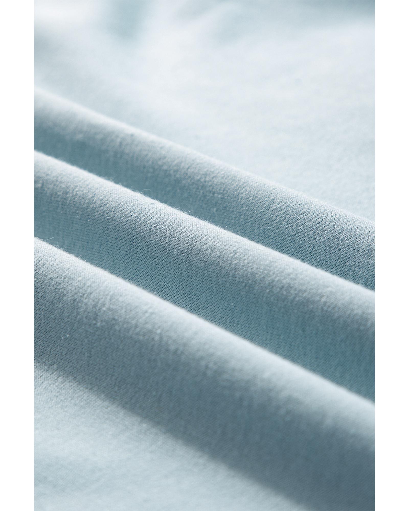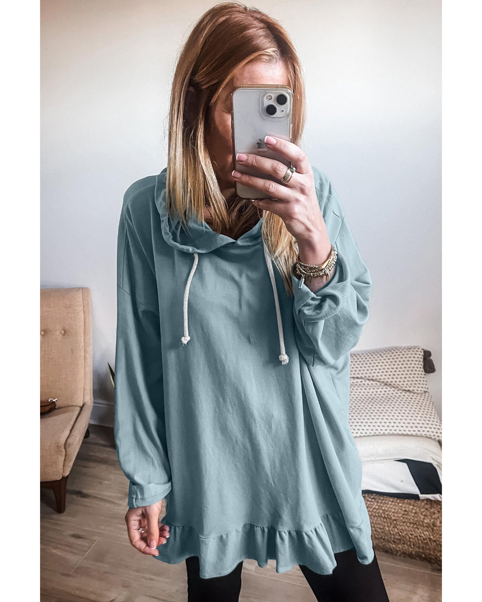 • Iceland Blue Solid Ruffled Hem Loose Fit Tunic Hoodie