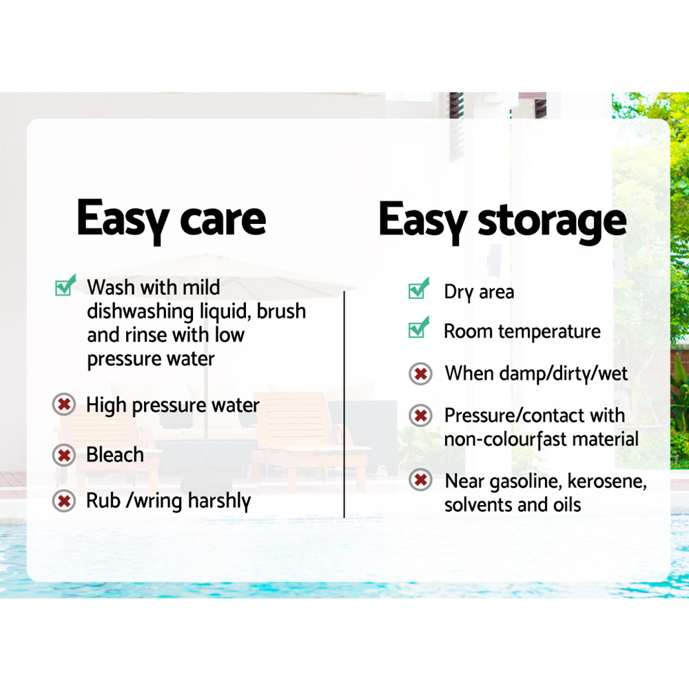 Soak up the sun, while staying cool under our Instahut centre post umbrella. Its steel supports an Octagon UV50+ canopy, ideal for the peak of summer. Made of water-resistant and wear-resistant polyester, it stands up to all sunny adventures. A water-fillable, portable base ensures beach-to-backyard versatility, while the washable canopy ensures freshness. Sunshine and shade, harmoniously blended for your summer escapades. Note: Umbrella base not included.