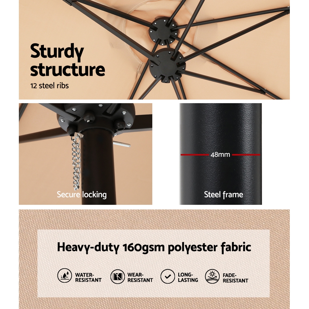 Instahut 4.57m Outdoor Umbrella w/Base Stand Beach Pole Garden Tilt Beige
