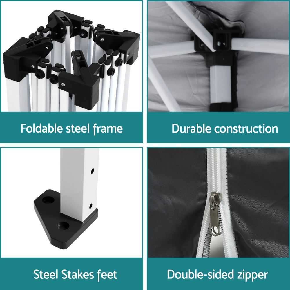 Instahut Gazebo 3×3 Pop Up Marquee Folding Tent Wedding Gazebos Camping Outdoor Shade Canopy Gray