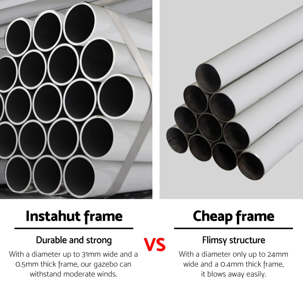 It’s your big day and everything needs to be perfect, including the comfort of your guests. That’s where Instahut comes to the rescue. The ideal solution for instant cover outdoors, our 300cm by 600cm wedding gazebo will ensure your guests are protected come rain or shine. Made from strong powder-coated metal tubing and covered with a 100PE UV and water-resistant canopy, the gazebo is built to last in a variety of weather conditions. With its quick and convenient hook & loop attachments, you can set the gazebo up in minutes. The bonus carry bag allows you to store it away in your car boot, van, trailer, garage or shed until just the right moment. It also comes with bonus ropes and pegs so you can rest assured your canopy will last throughout the event. It’s not just suitable for weddings – the gazebo is suitable for markets, sporting events, camping, yard sales, school events and trade shows. Enjoy the outdoors to the fullest with an Instahut Wedding Gazebo.