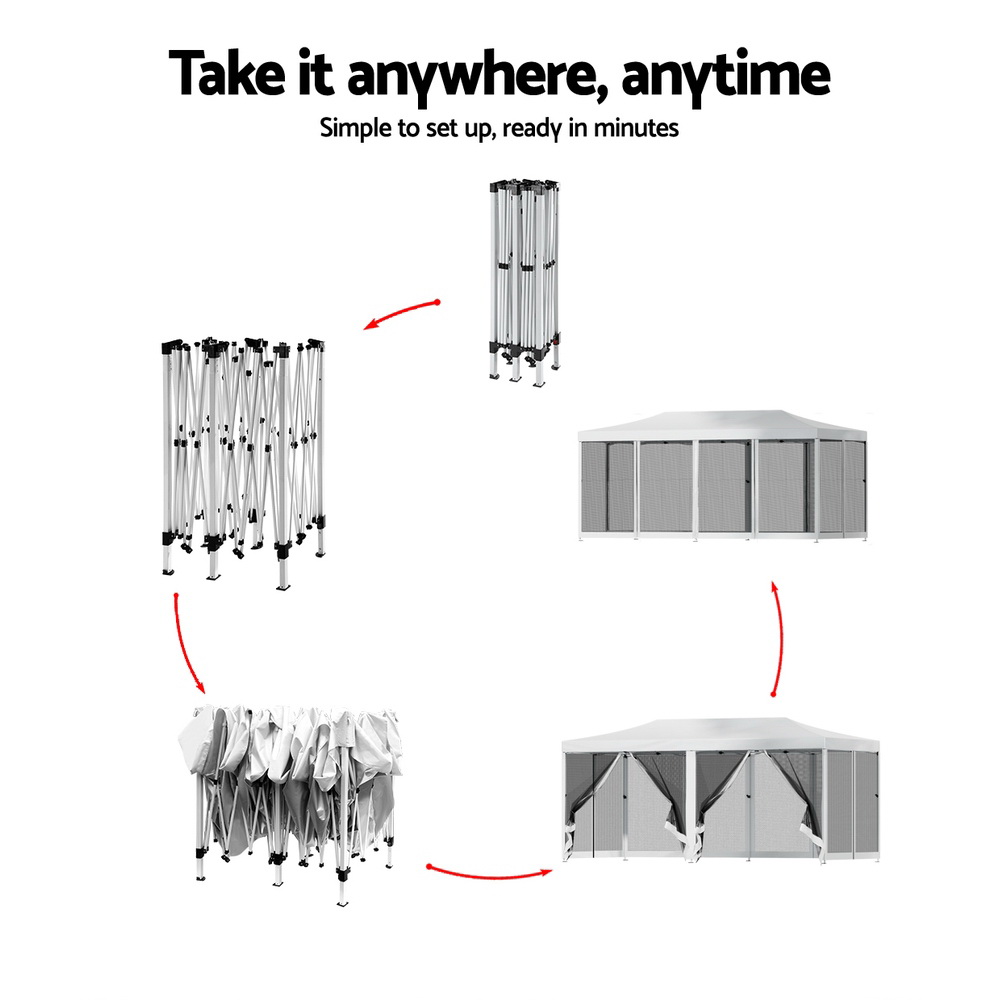 Instahut Gazebo Pop Up Marquee 3x6m Wedding Party Outdoor Camping Tent Canopy Shade Mesh Wall White