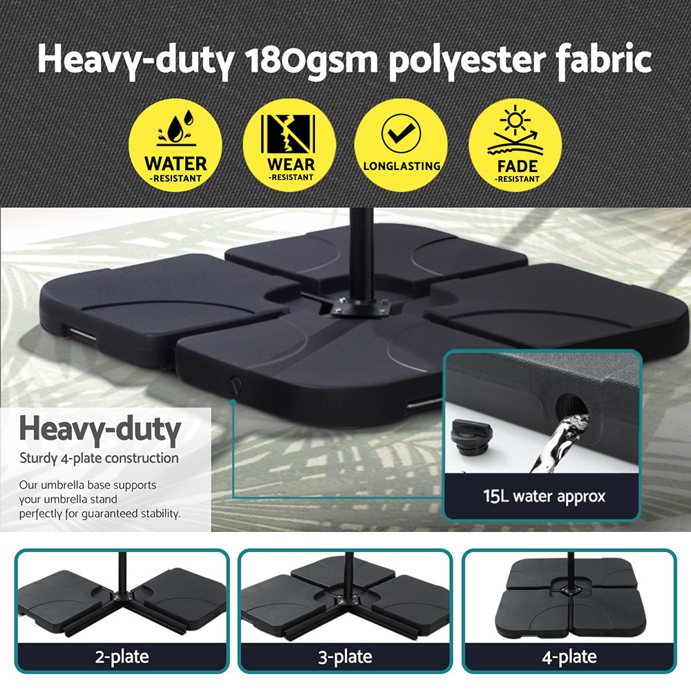 Instahut Outdoor Umbrella 3M Cantilever Beach LED Base Garden Sun Patio Charcoal