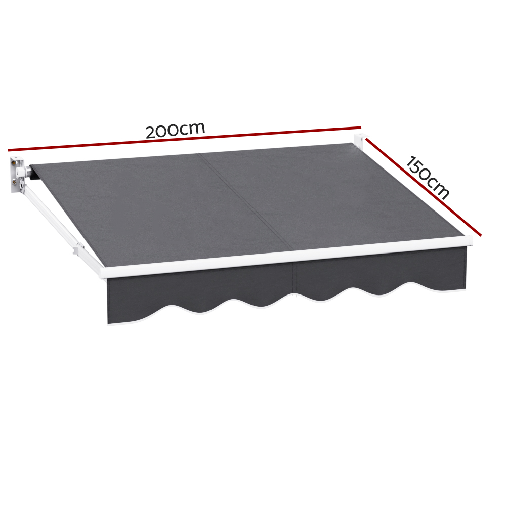 Instahut Retractable Folding Arm Awning Manual Sunshade 2Mx1.5M Grey