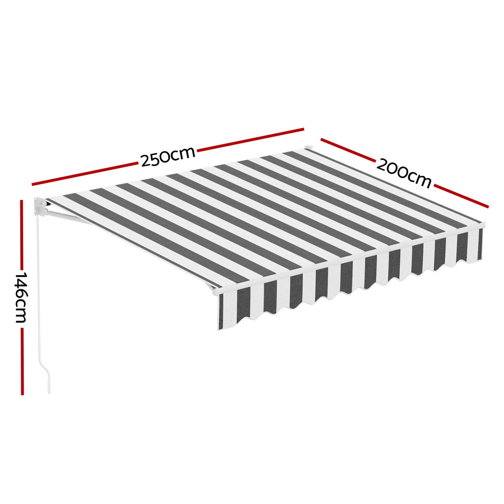 Instahut Retractable Folding Arm Awning Motorised Sunshade 2.5Mx2M Grey White