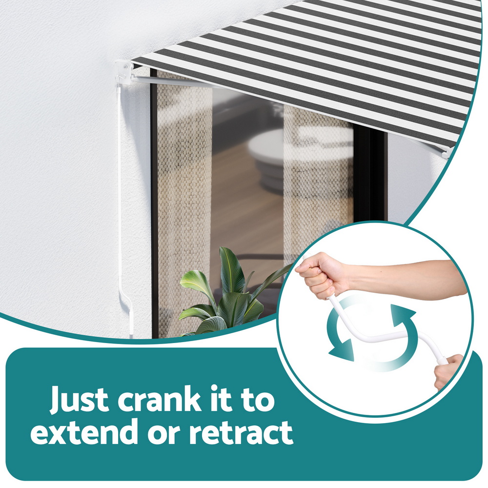 Instahut Retractable Folding Arm Awning Motorised Sunshade 5Mx3M Grey White