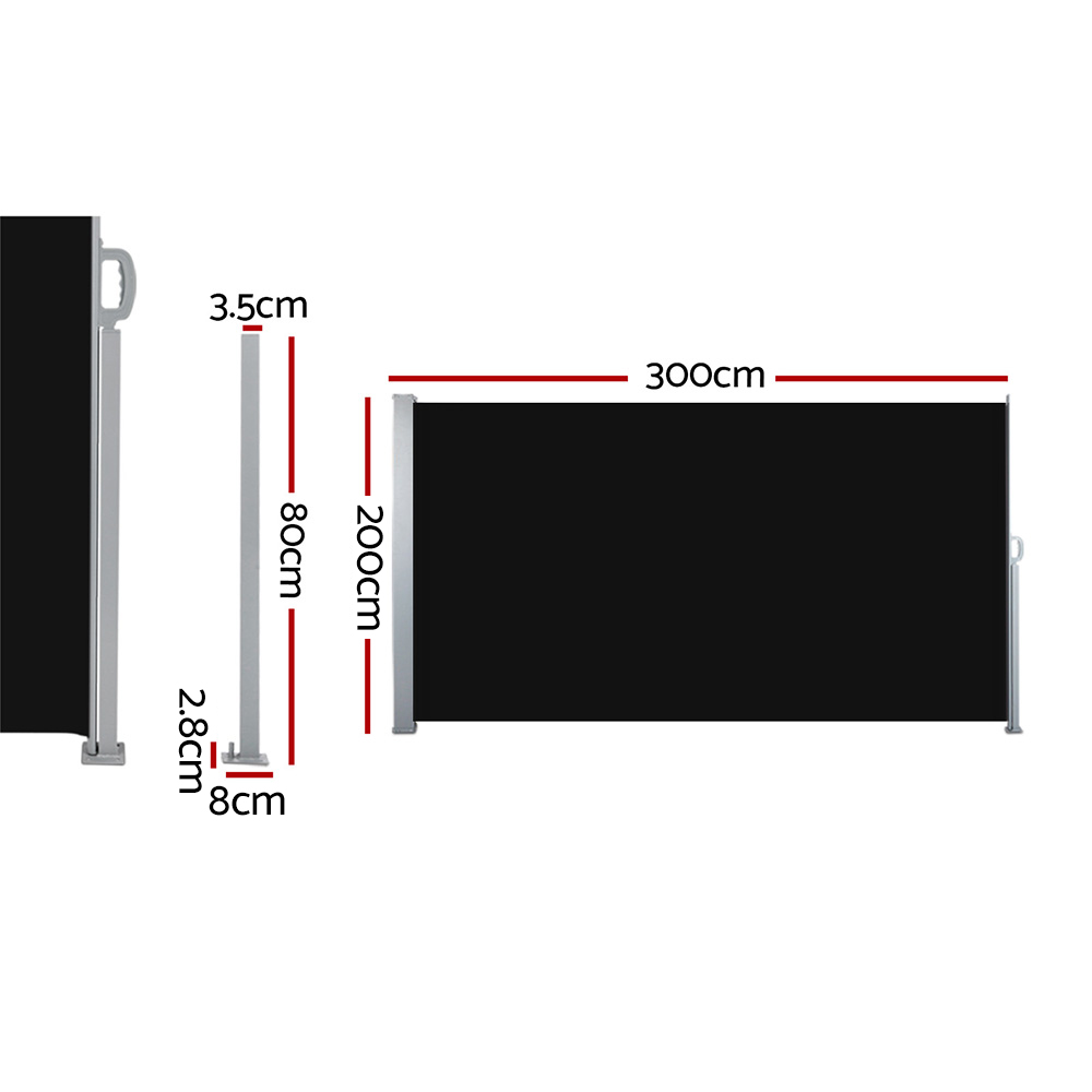 Instahut Side Awning Sun Shade Outdoor Retractable Privacy Screen 2X3M Black X2