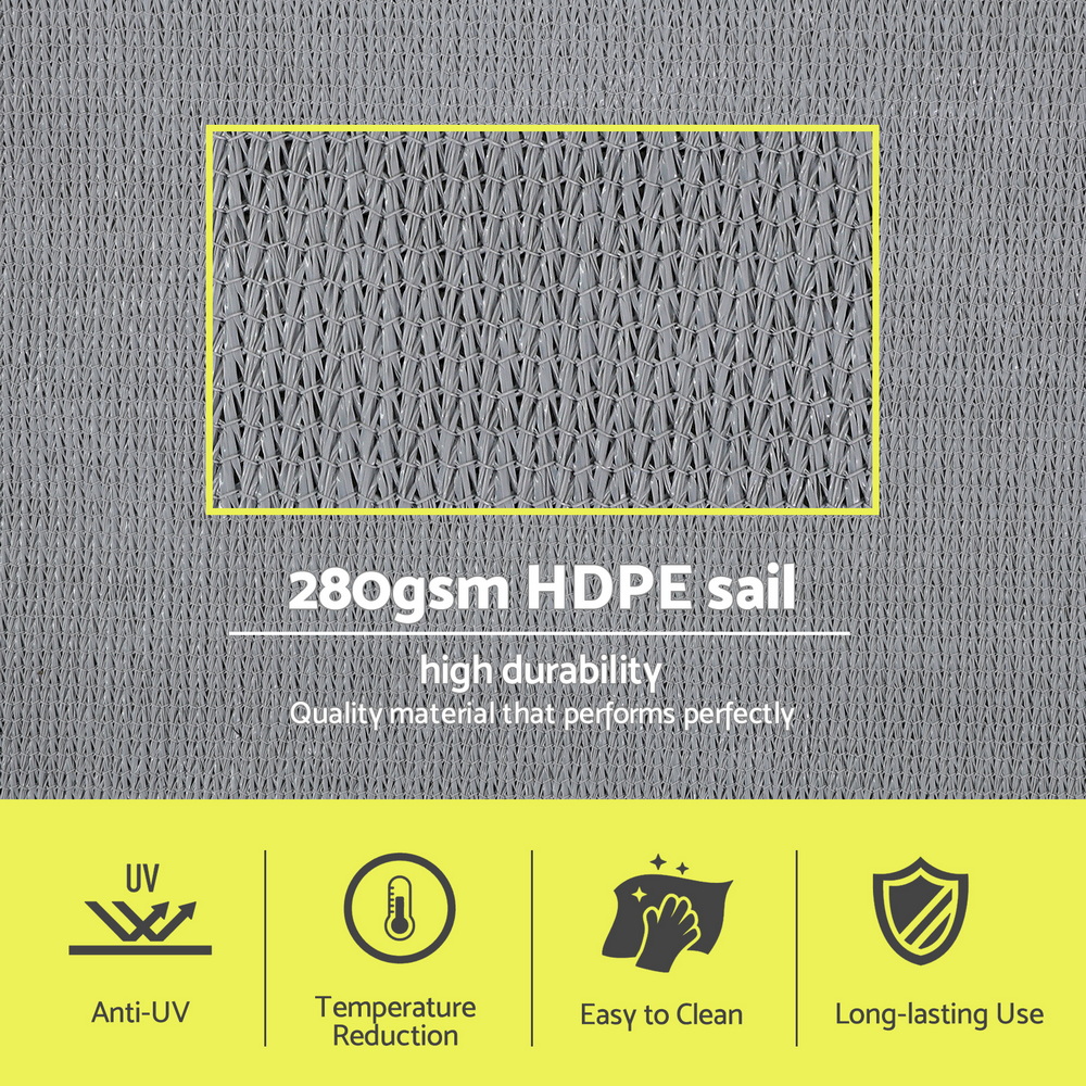 Designed to be a permanent covering, our Shade Sail is made from highly breathable 280g/m2 commercial grade 100% polyethylene fabric. This allows cooling air to pass through and help keep the under shade areas well ventilated. The material also blocks up to 98% of harmful UV rays and is all-weather proof to suit Australian climatic conditions. Plus, the material is further enhanced with Americhem UV-resistant additive from the USA to prolong its UV protection effectiveness.
