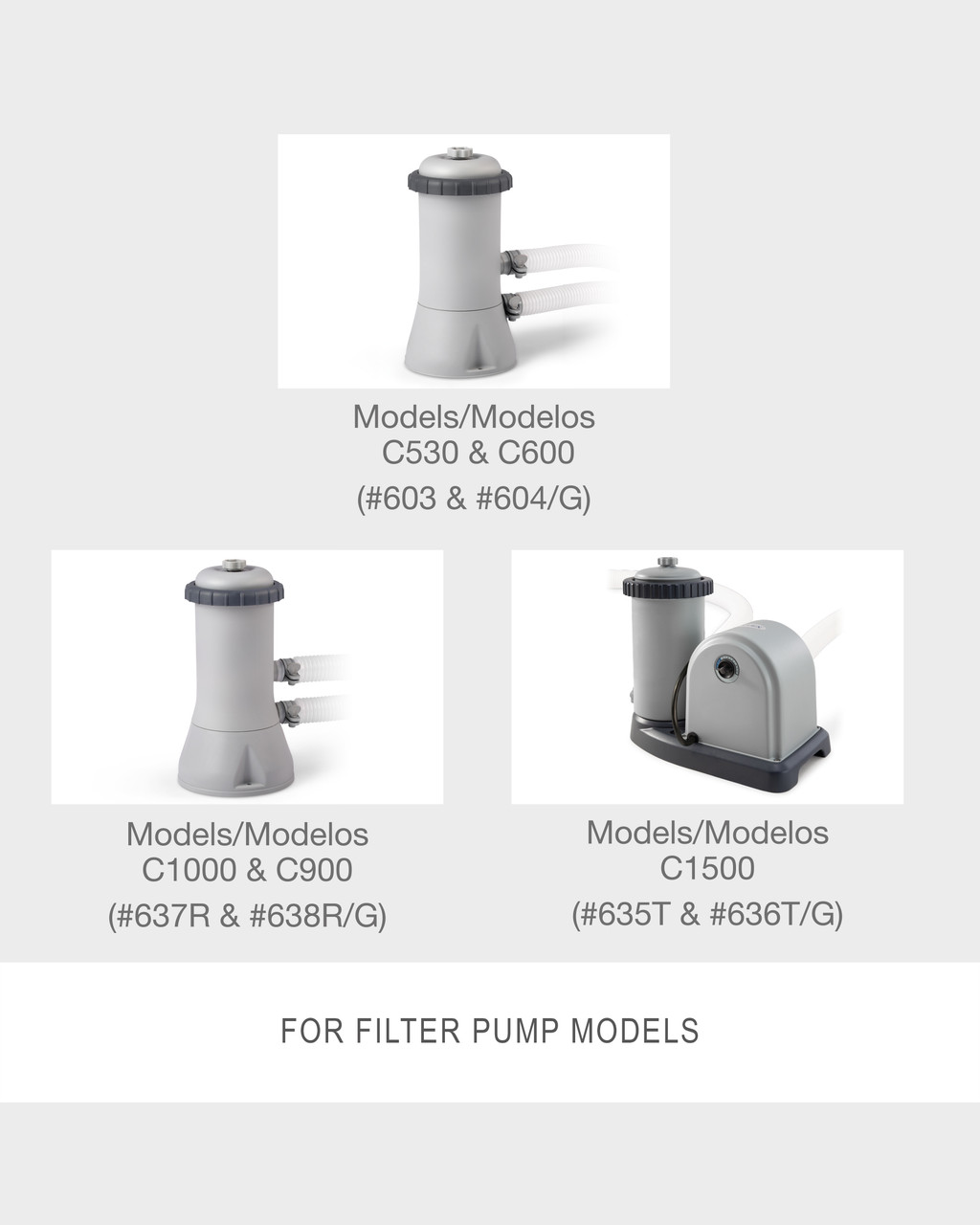 - 28604, 530 GPH Cartridge Filter Pump28638, 1000 GPH Cartridge Filter Pump28636, 1500 GPH Cartridge Filter Pump