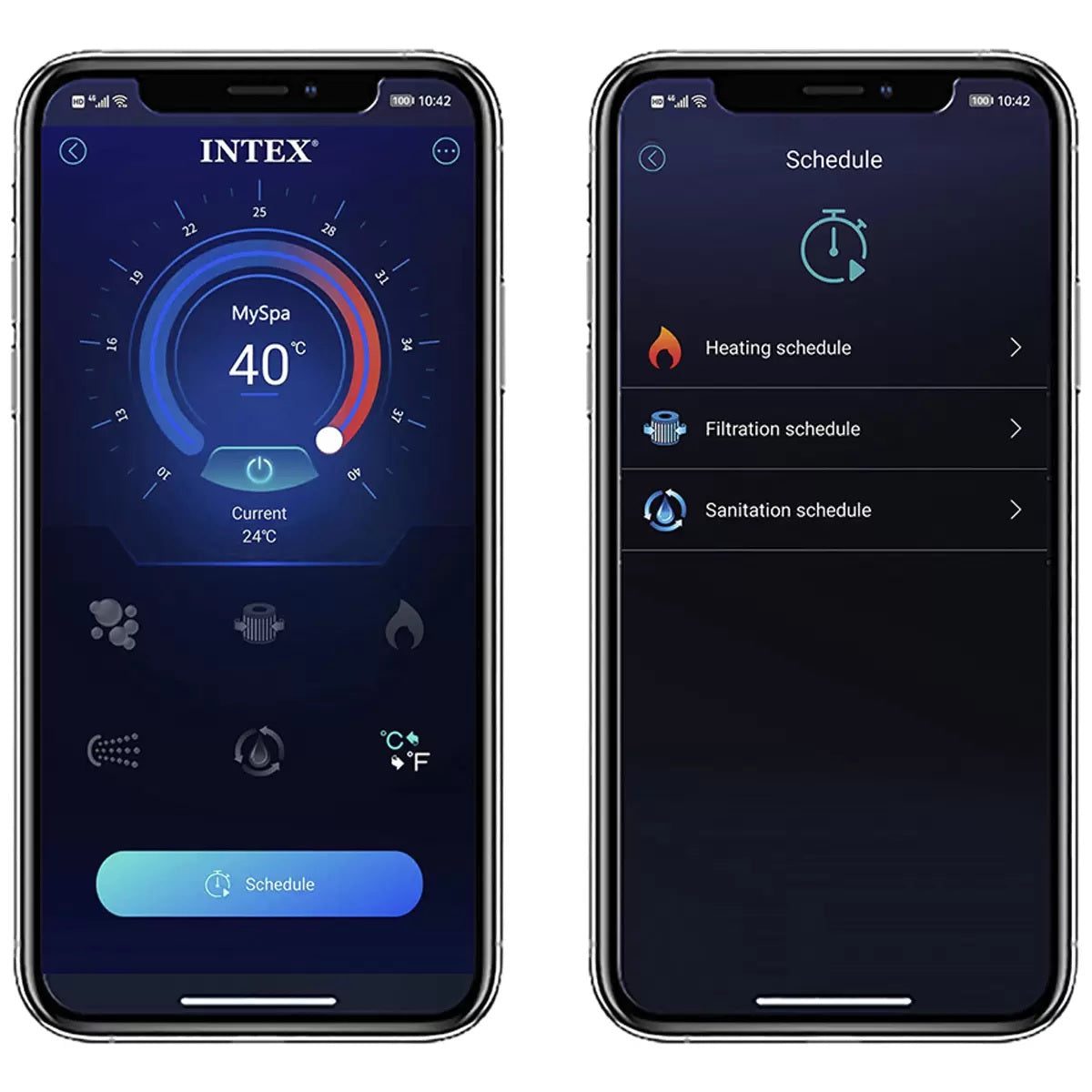 The PureSpa Jet & Bubble Deluxe Spa combines the pleasures of a high-performance jet massager and a bubble massage spa in one luxurious setting. High-performance engineering and Hydro Aeration Technology make the PureSpa Jet Bubble Deluxe Spa the gold standard in luxury spas. Intex’s Saltwater Sanitation and Hard Water Treatment systems, as well as the Intex Link Spa Management App, come standard and ensure an effortless spa experience.