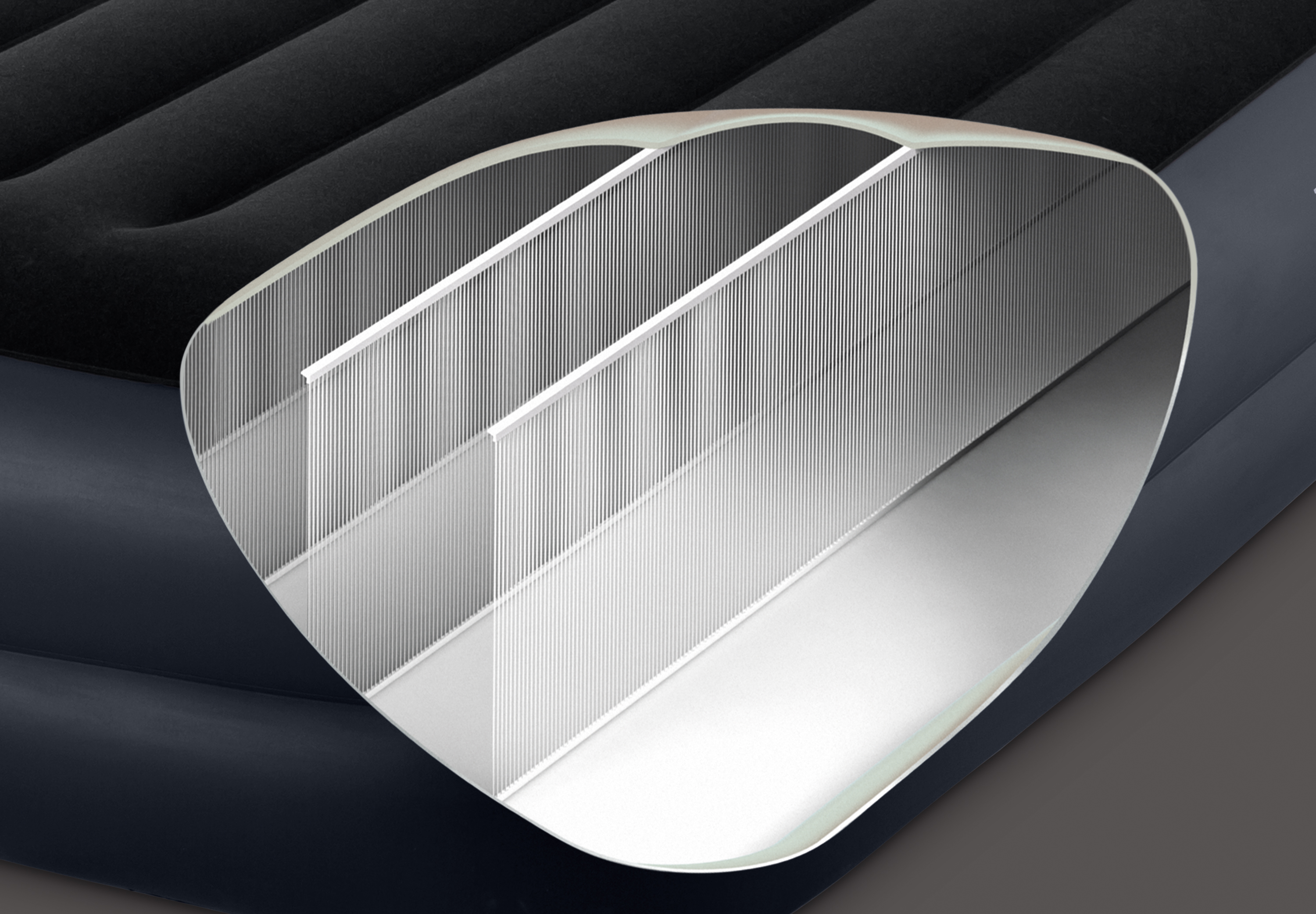 - Inflatable queen airbed for home use engineered with Fiber-Tech interior construction