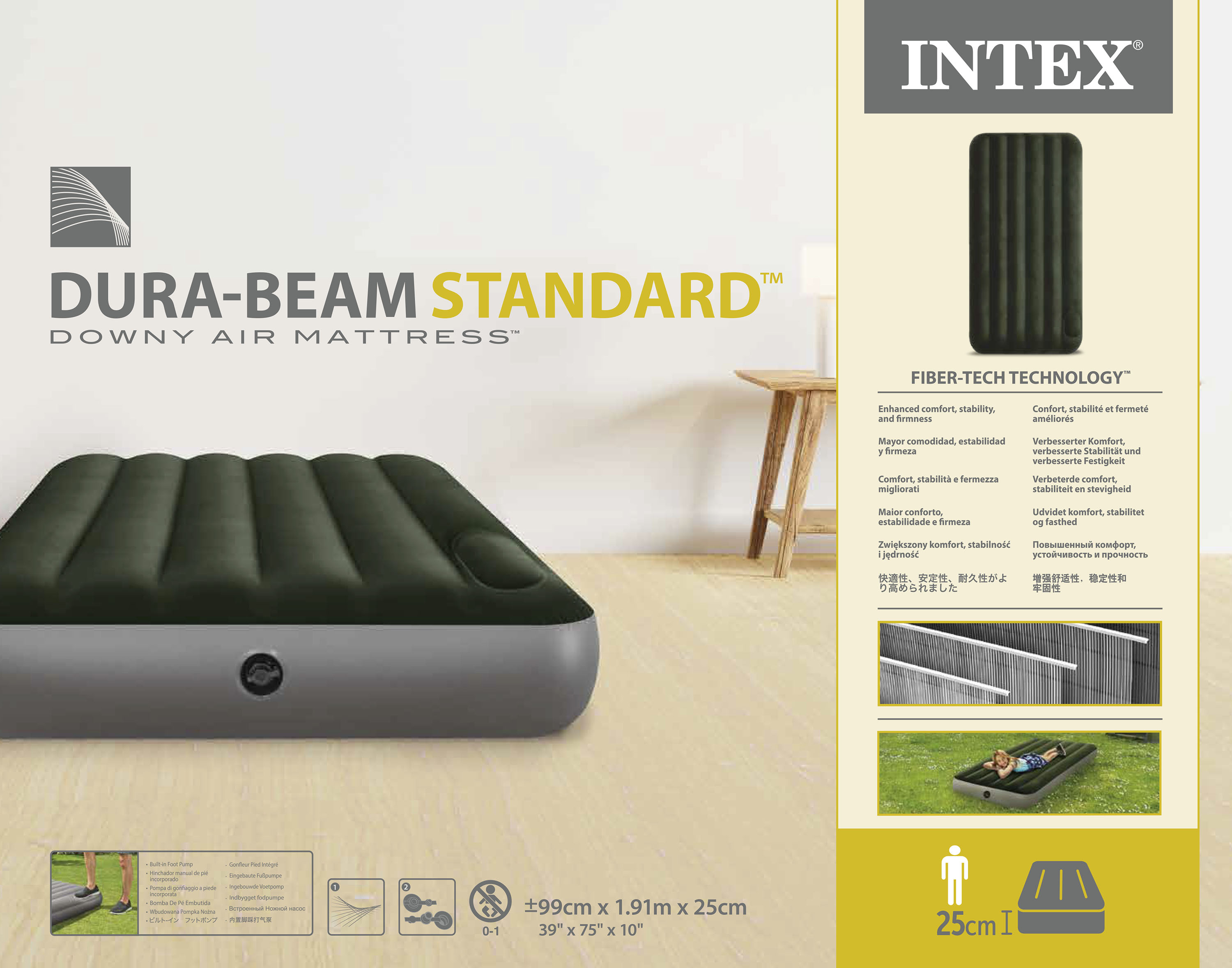Single Twin Dura-Beam Series Classic Downy air bed Built in Foot Pump