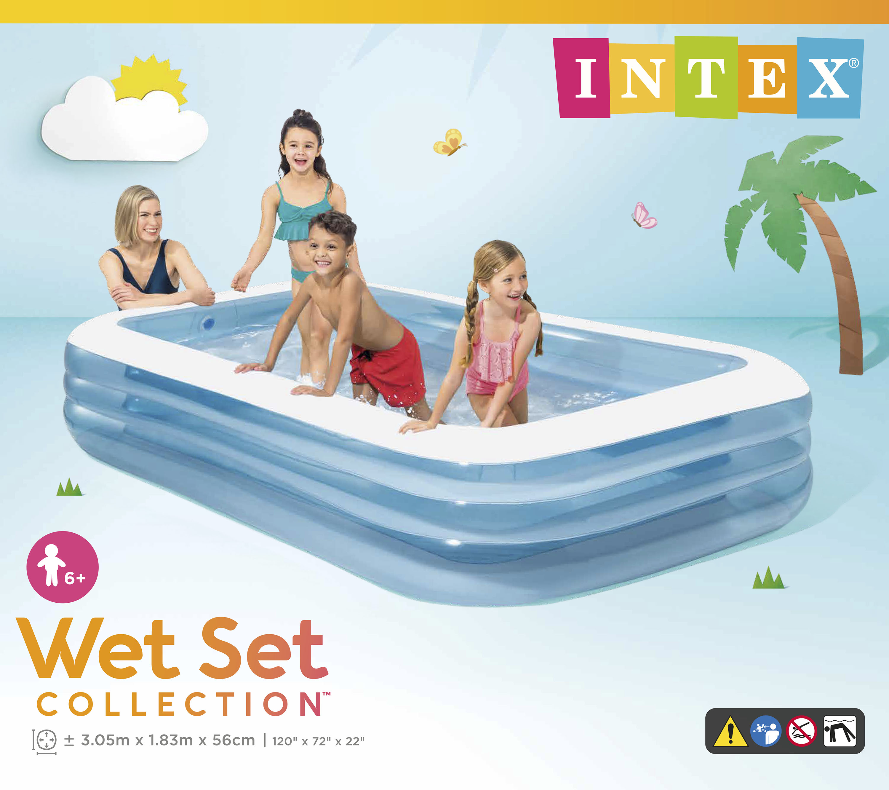 - 3.05m x 1.83m x 56cm (120″ x 72″ x 22″) inflated
