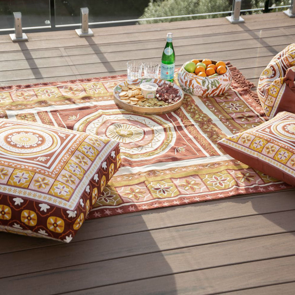 The Kasbah Luxury Fringe Throw 130 x 160cm by J Elliot Home is more than meets the eye, its versatility is endless from a throw to a beach picnic rug or even a wall hanging, the opportunities are endless. Inspired by the streets and colours of Morocco. Its bold and brave design elements will make it the centrepiece of any space it resides in. Available in a Pink, Black and Blue multi explore the entire Kasbah range! Made from quality and soft feel Polyester Cotton fabric.